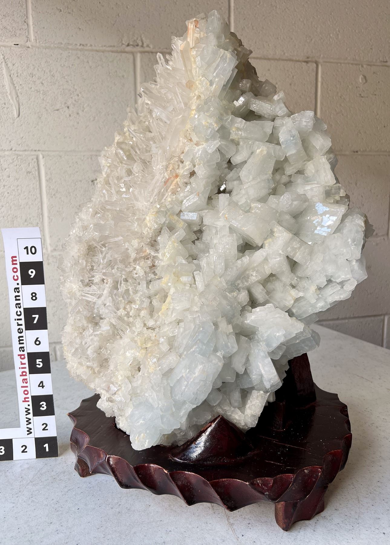Truly spectacular mineral combination: pale blue barite crystal up to 3/4-inch across are paired with clusters of water-clear quartz crystals up to three inches long. Heavy and dense. Comes with a custom-carved wooden base. Approx 21 inches tall, 15 inches wide. Amazingly attractive specimen. China Chunlin Zhu Collection