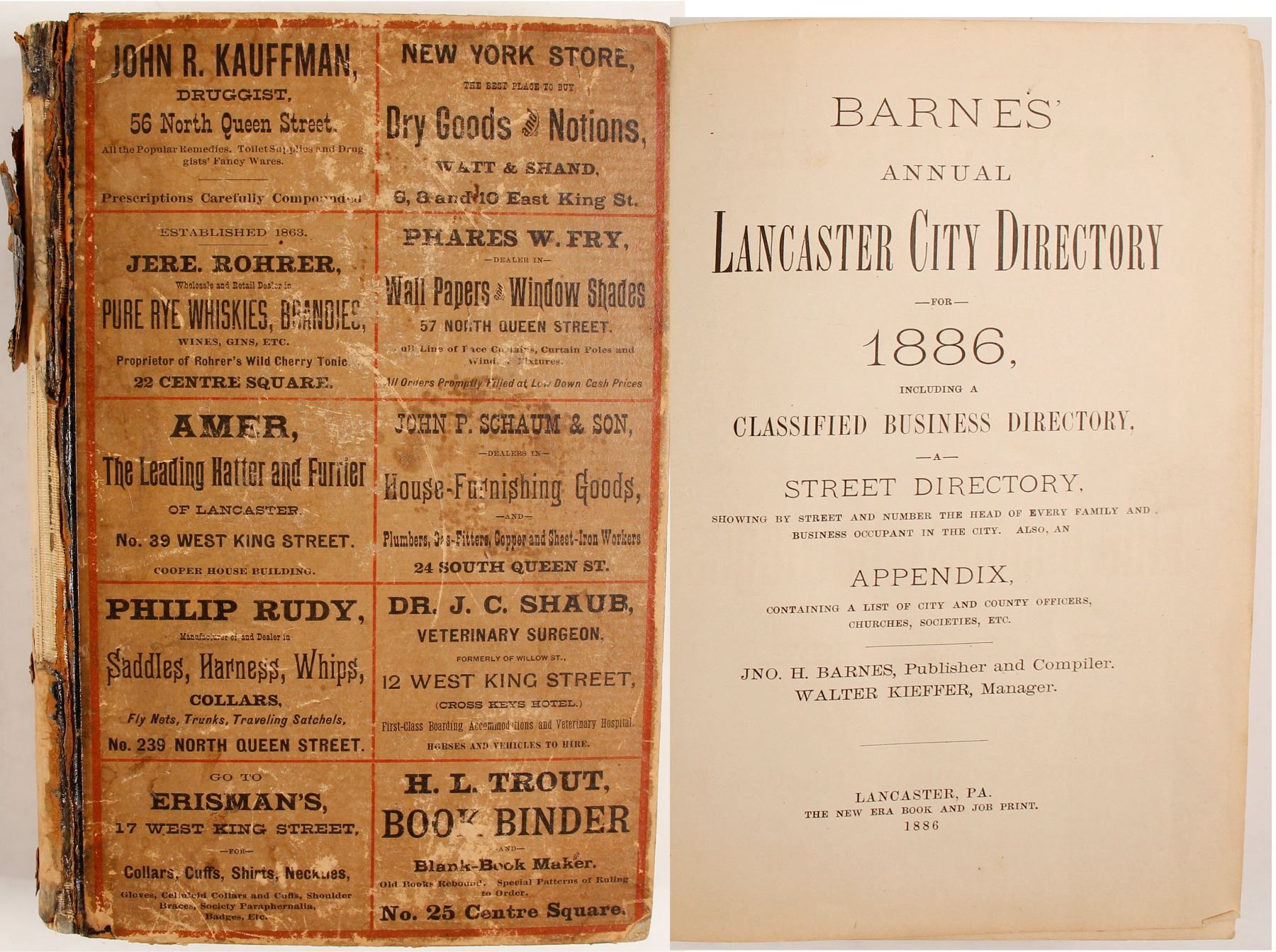 Barnes’ Annual Lancaster City Directory for 1886, Including a Classified Business Directory, a Street Directory, … and an Appendix. Compiled and published by Jno. H. Barnes._x000D_