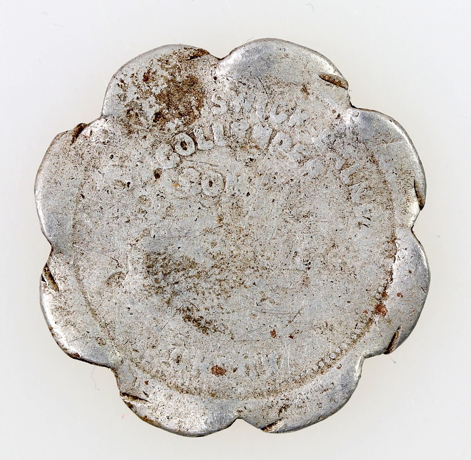 From the Marion County town of Mt. Angel: GOOD FOR / A 5¢ / B. OSWALD / DRINK // THE BRUNSWICK BALKE / COLLENDER / COMPY / CHECK; Al., Sc 8, 29 mm. R 6. Rare token, rough condition. Directories list B. Oswald as far back as 1884, and up through 1901 as proprietor of the Mt. Angel Hotel.