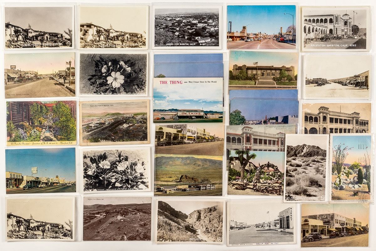 26 Postcards. 6 RPC's. From beautiful old colored photos like the Casa del Desierto to newer RPC's like the railroad station. Includes a Frasher Beacon Tower RPC and three other Frasher's. (Prag collection) City: Barstow State: California Date: ID# 31107