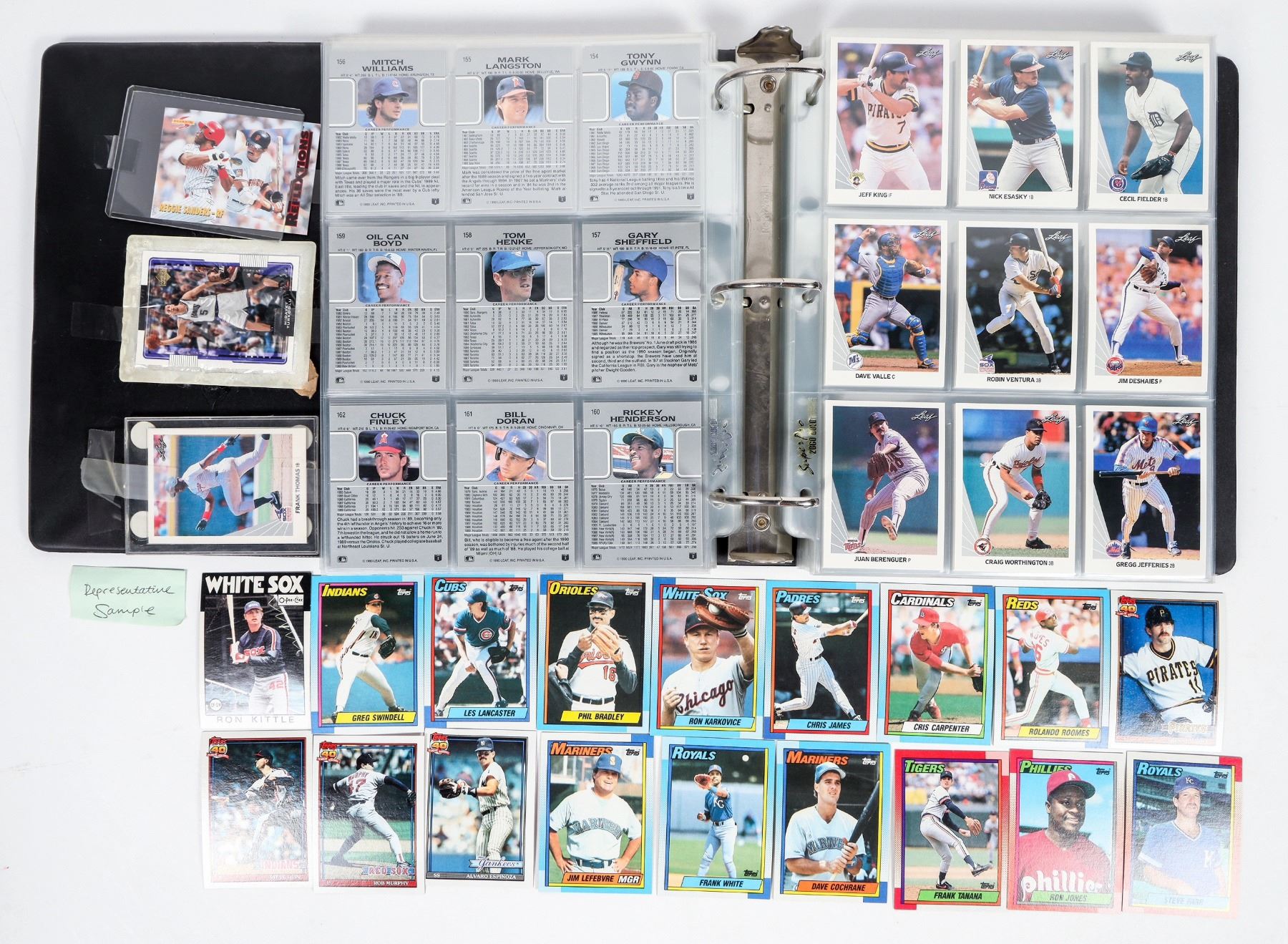 Unpicked and untouched album of roughly 450 baseball cards from the 1990s, plus box with a 3" thick stack of cards.