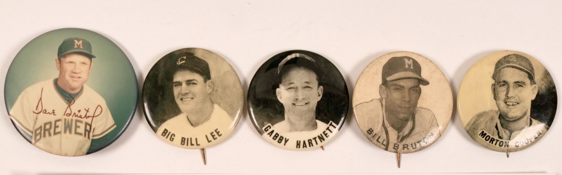 Lot of five circa 1940s: Morton Cooper, Bill Bruton, Big Bill Lee, Gabby Hartnett, Dave Bristol. All black and white except Bristol's in color.
