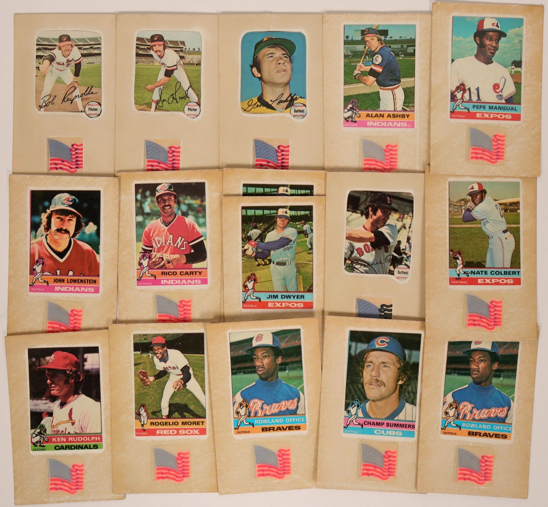 Grab bag. This is a group of odd postcards we found in the Reynolds collection. They seem to be baseball cards glued on to postcards. Players include: Ken Rudolph, Rowland Office, Jim Dwyer, John Lowenstein, and Nate Colbert. Grab bag lot about 15 cards.