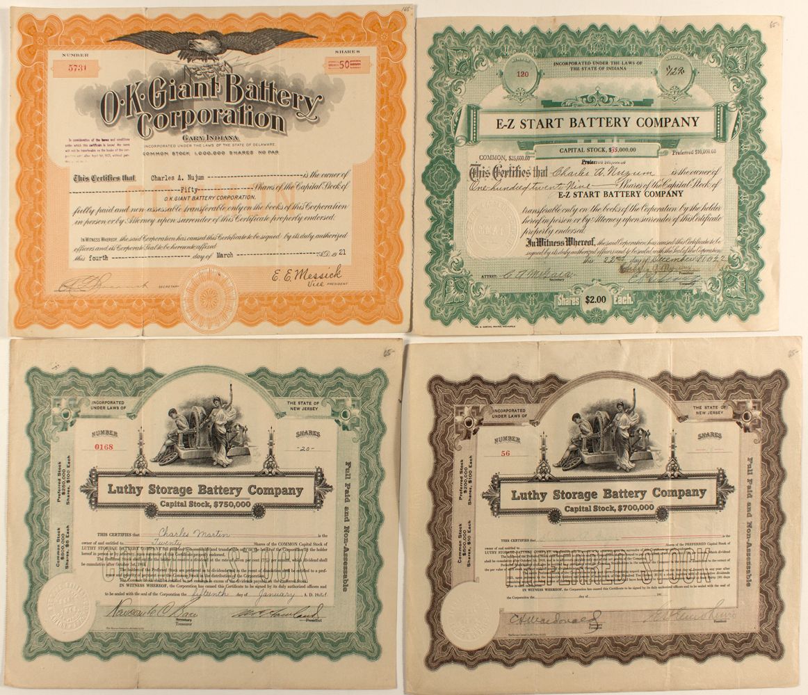 Four Battery Company stocks (Pre-Tesla). Prag Collection