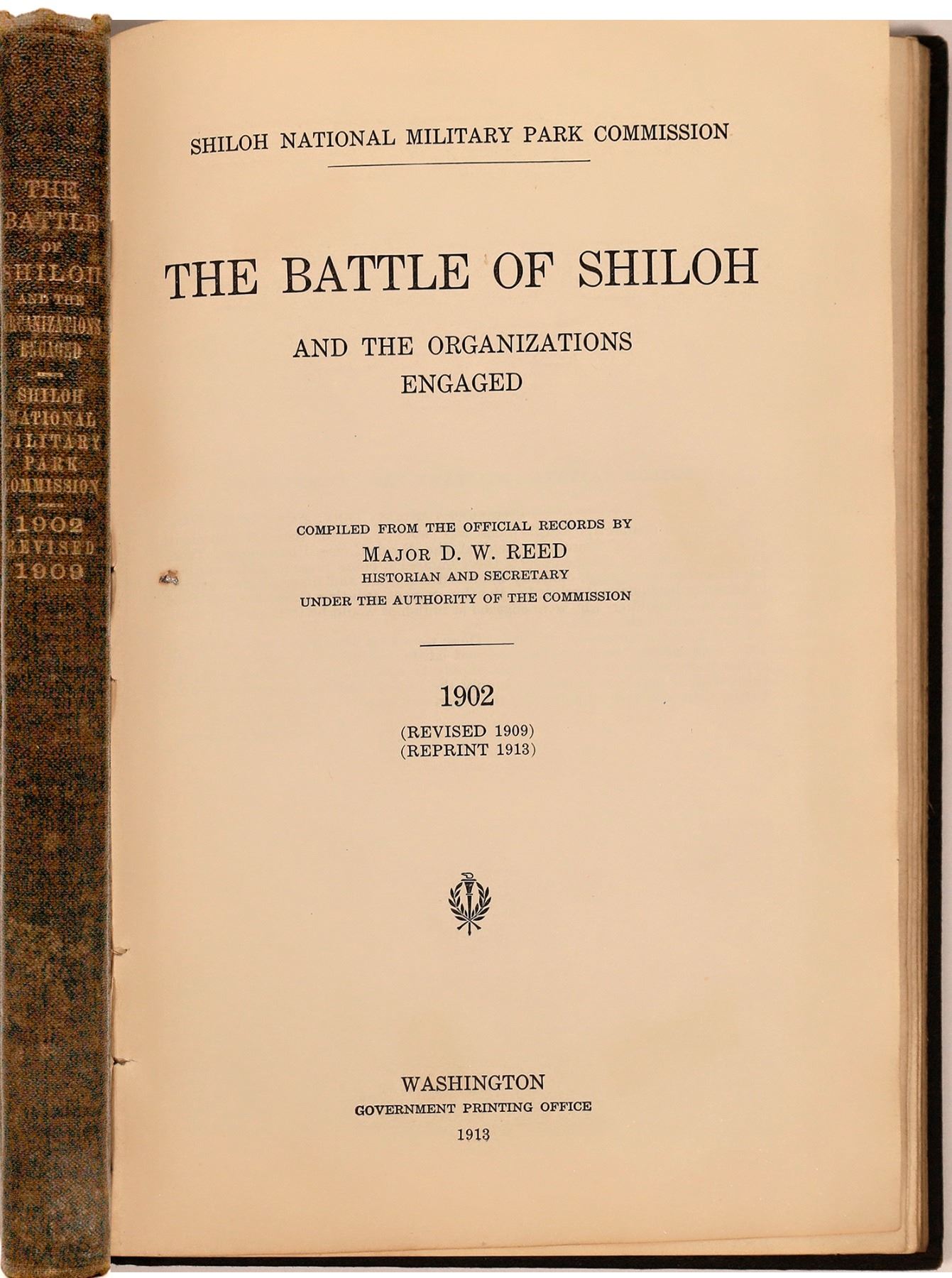 Reed's impressive dissertation on the Battle of Shiloh, first published in 1902, revised 1913, GPO. 122pp with all maps.