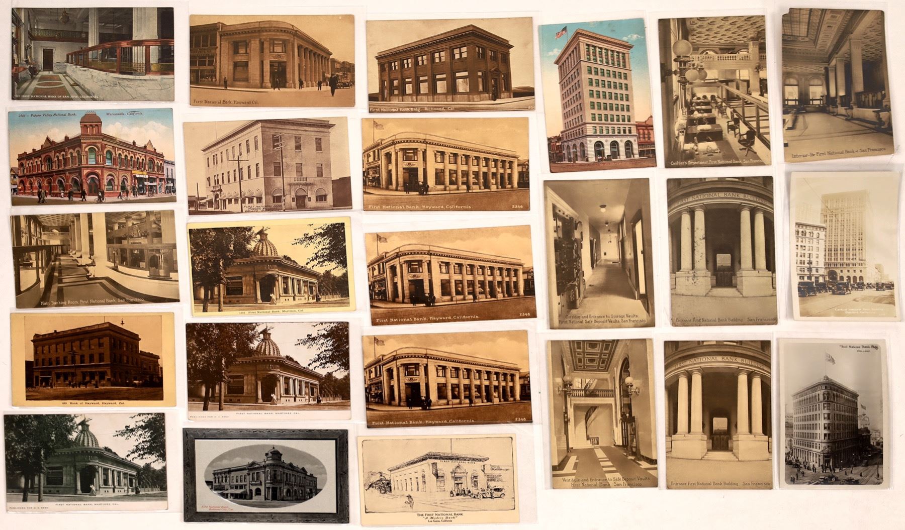Beautiful postcards of the exteriors and a few interiors of splendid bank buildings in and around San Francisco. There are 21 B&W with RPCs and 3 color with chromoliths. You can bank on this deal.