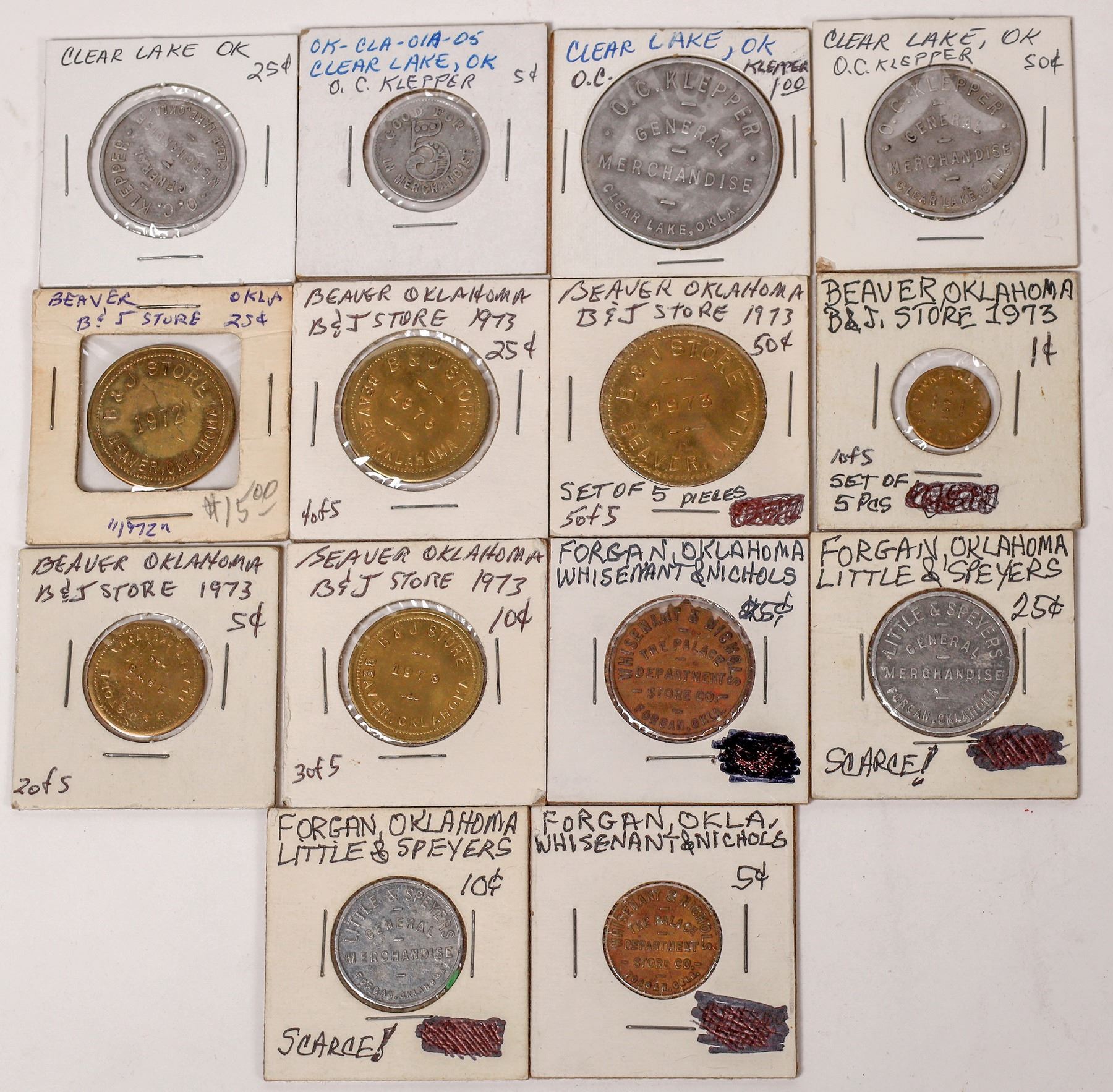 14 Beaver County, OK tokens. 6 Beaver, 4 Clear Lake, 4 Forgan.
