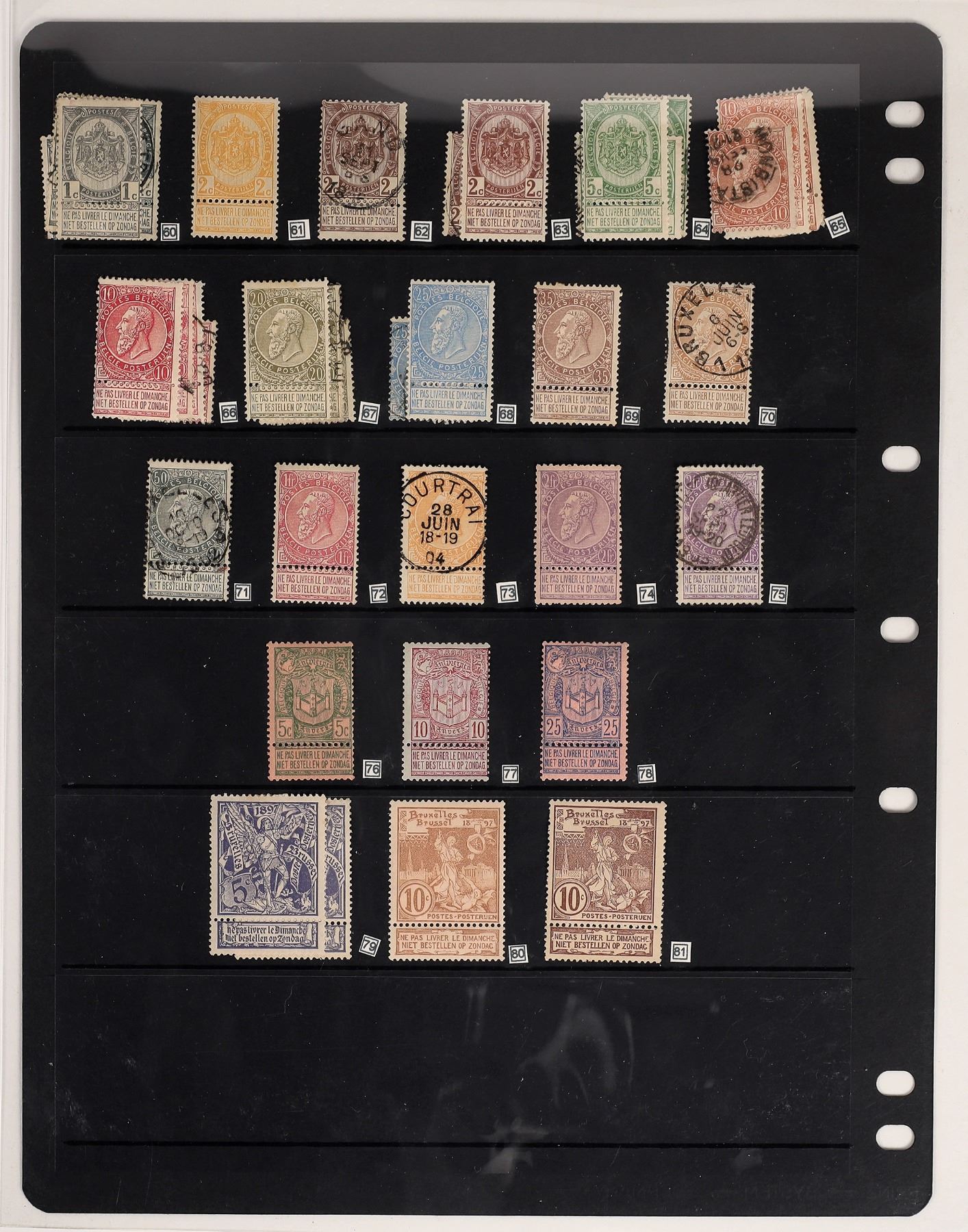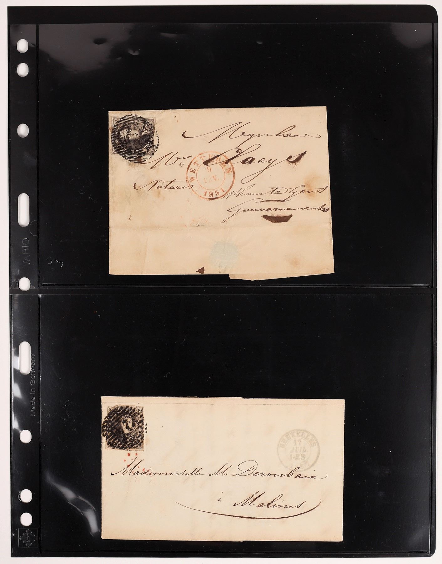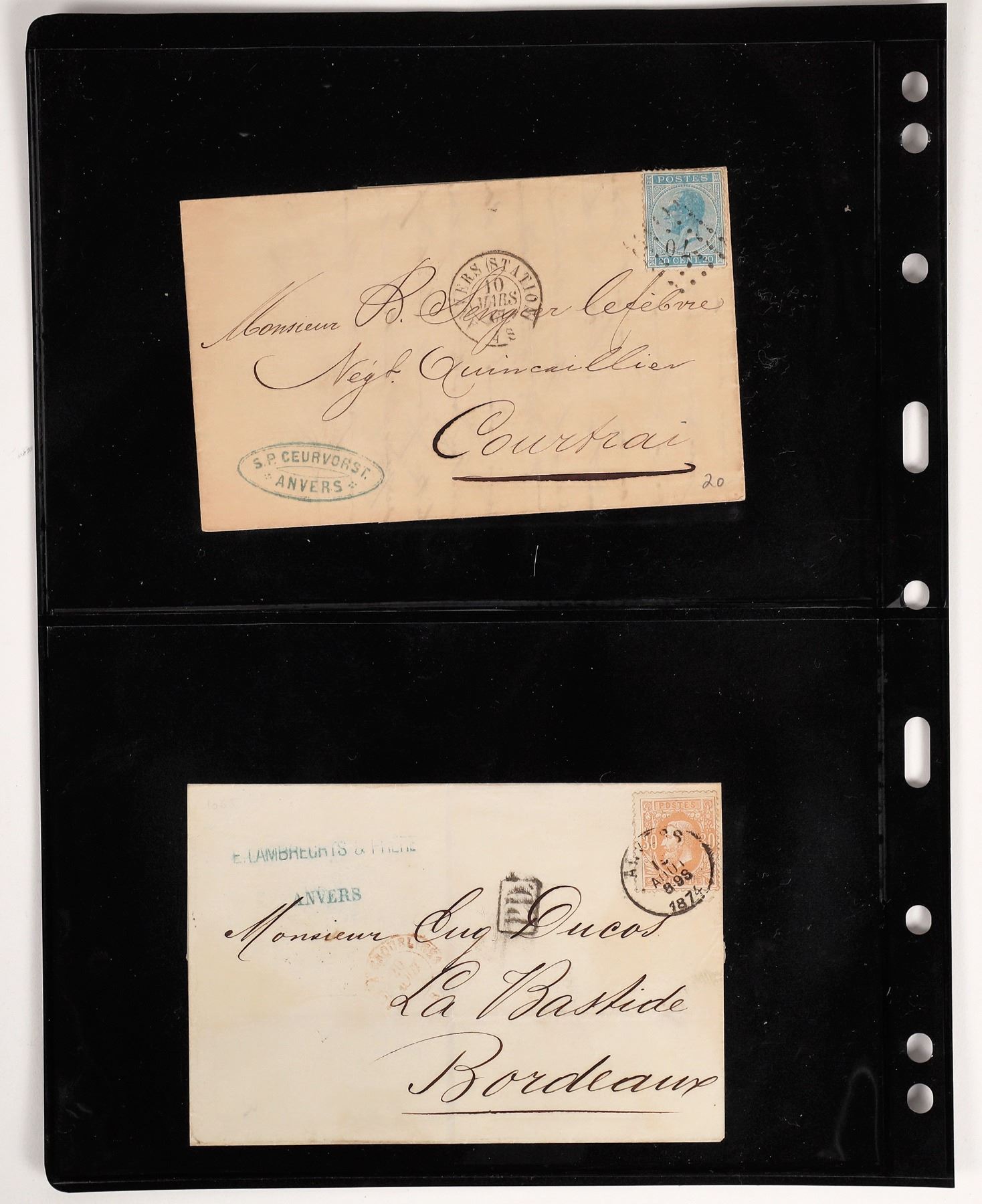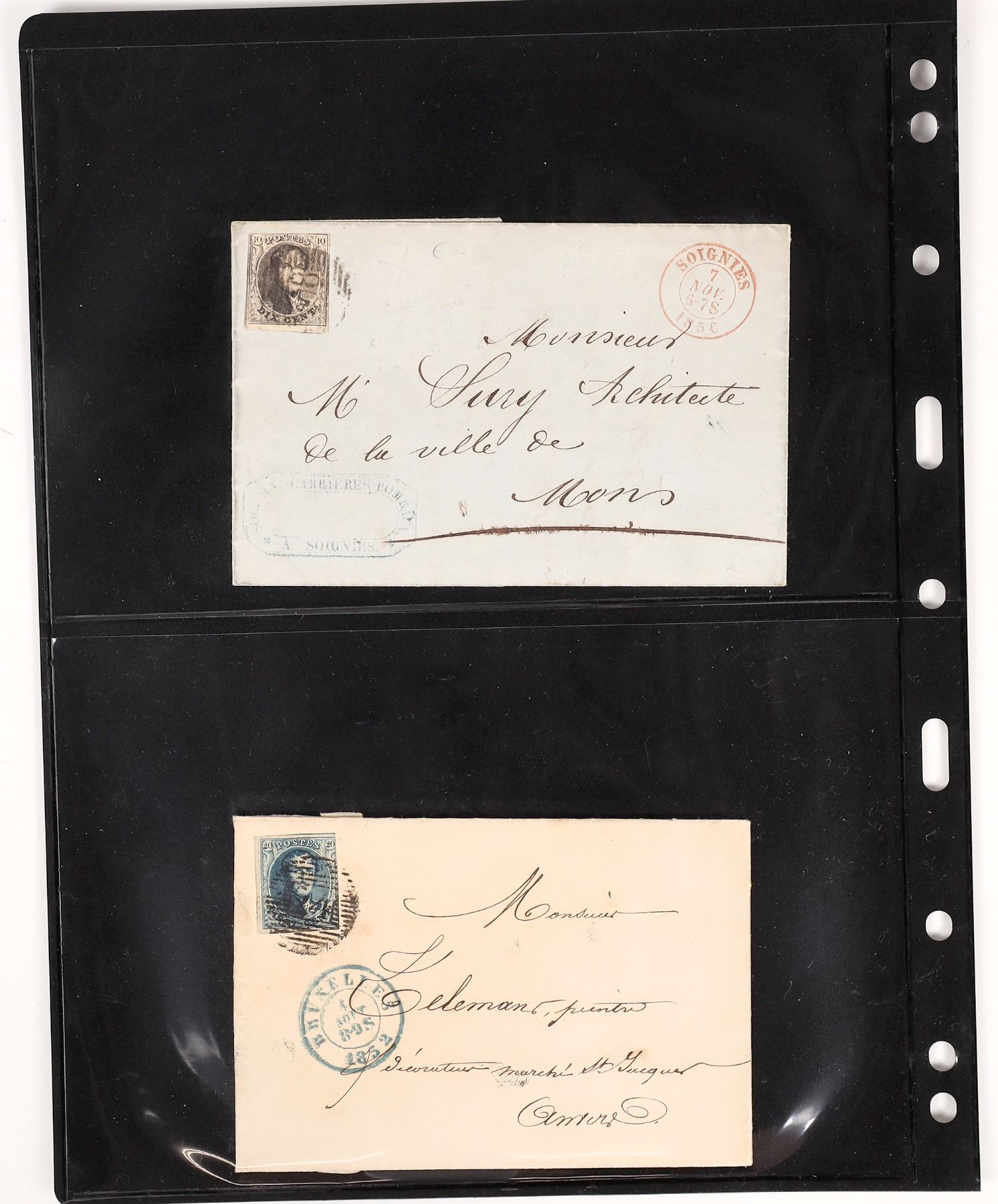 Belgium. 1850-1912 issues, comprehensive collection with Scott numbers #1-101 complete ex four (#23, 27, 43, 97), incl. 1878 5fr pale brown, owner's 2005 Scott catalog $3,540 (not counted 1875 5fr bar cancel with corner flaw), also 16 useful covers, best 1862 to Frankfort with 1861 40c & 10c, file fold affects stamps. Please see scans.