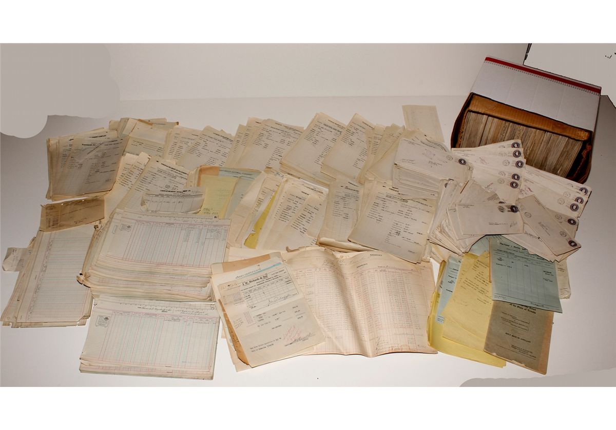 Two boxes full of Tonopah mining documents. First box: many assay settlement sheets and documents for the Tonopah Belmont Development Company. Most are assay results for the Tonopah Divide Mining Company, which the Belmont owned at this point. Also included are settlement sheets from the Macnamara Mining and Milling Company and stock ledger sheets showing when certificates were issued and cancelled. A quick look through this box of material shows most documents date to 1920-1922. The second box contains 200+ mailed envelopes from the 1940s, most with contents from the Tonopah Divide Mining Company office in Reno. Many envelopes are unopened. From an opened one, we find a letter addressed to stockholders detailing the company's losses and profits for 1943-1944. These two boxes are just waiting for a Nevada historian to dig through! Maish Collection