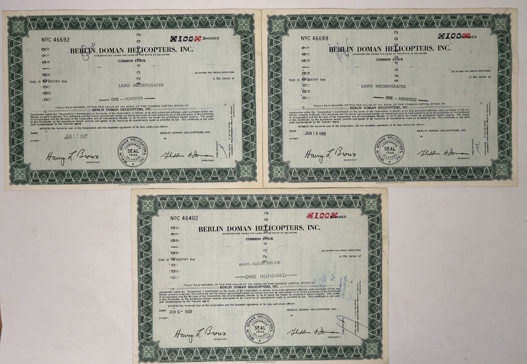 3 issued 1969 Berlin Doman Helicopter stocks.