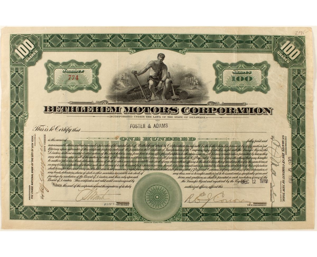 Certificate #774 for 100 shares issued to Foster & Adams. Prag Collection