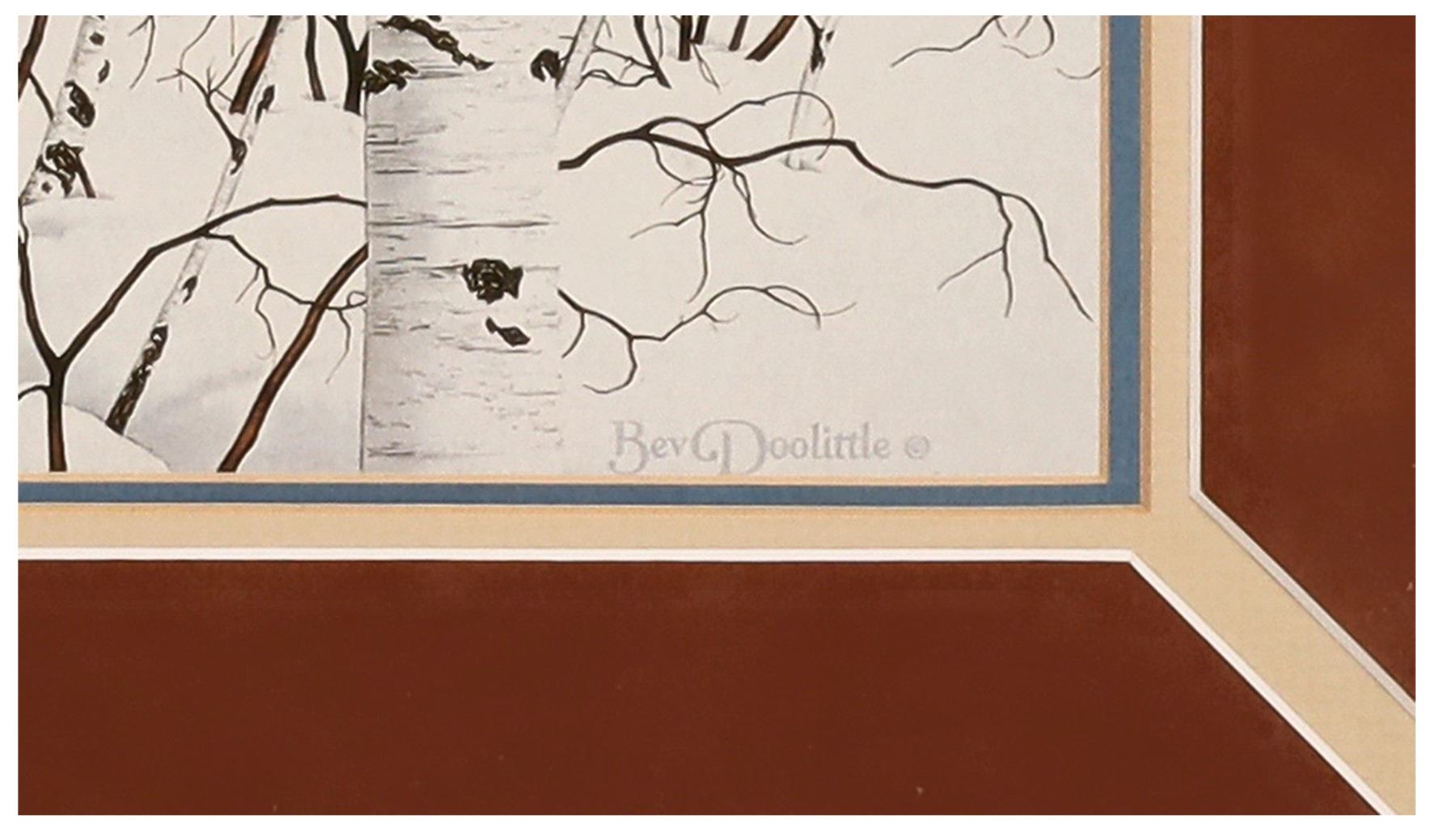 Framed Bev Doolittle Woodland encounter print with nice mat and wood frame. Print 11.75x24", frame 23.75x36".