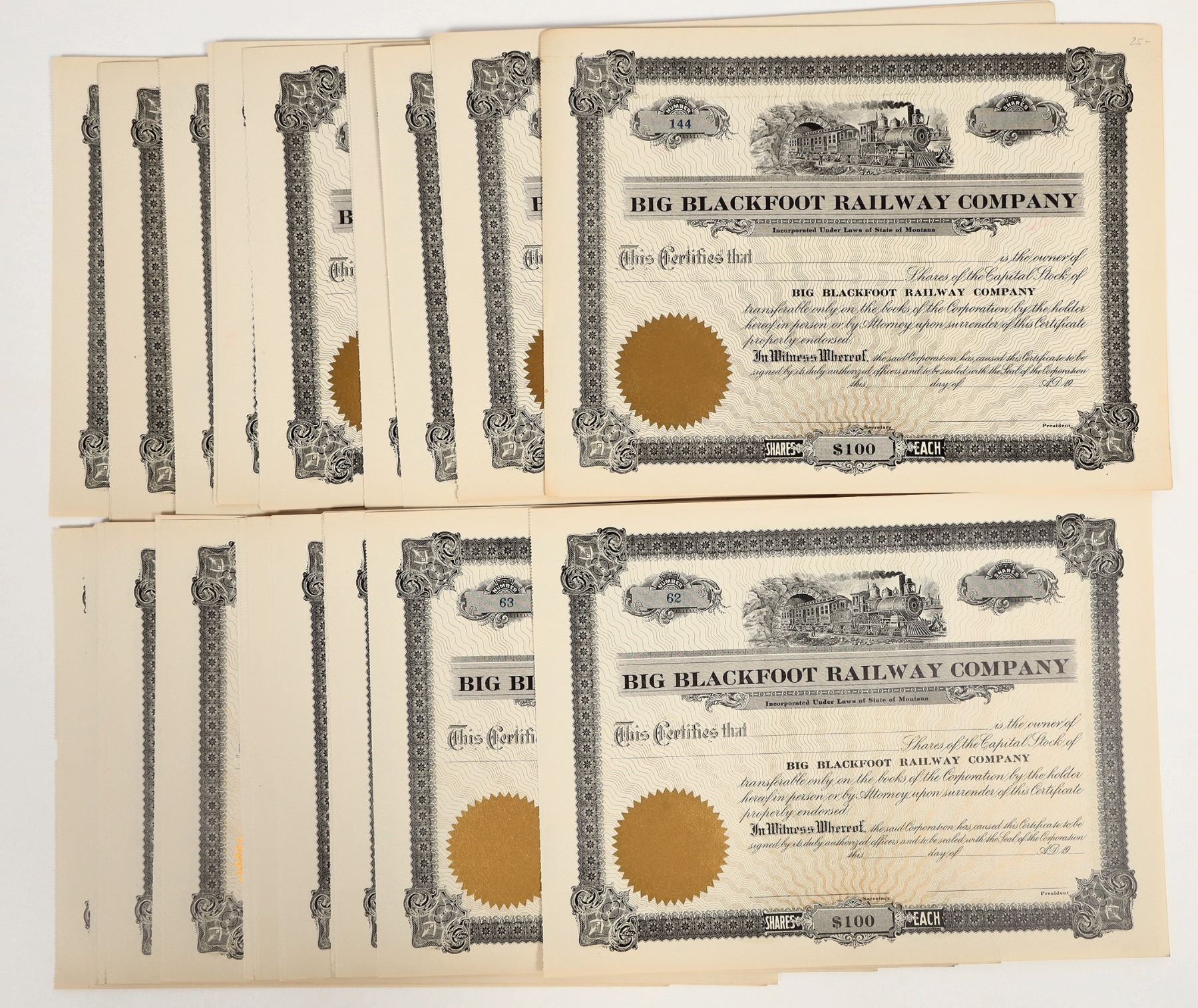Approx 35. All U/U. Dateline 19__. Big Blackfoot Railway Co, 4_4_0 passenger vignette. EF cond. Goes printer.