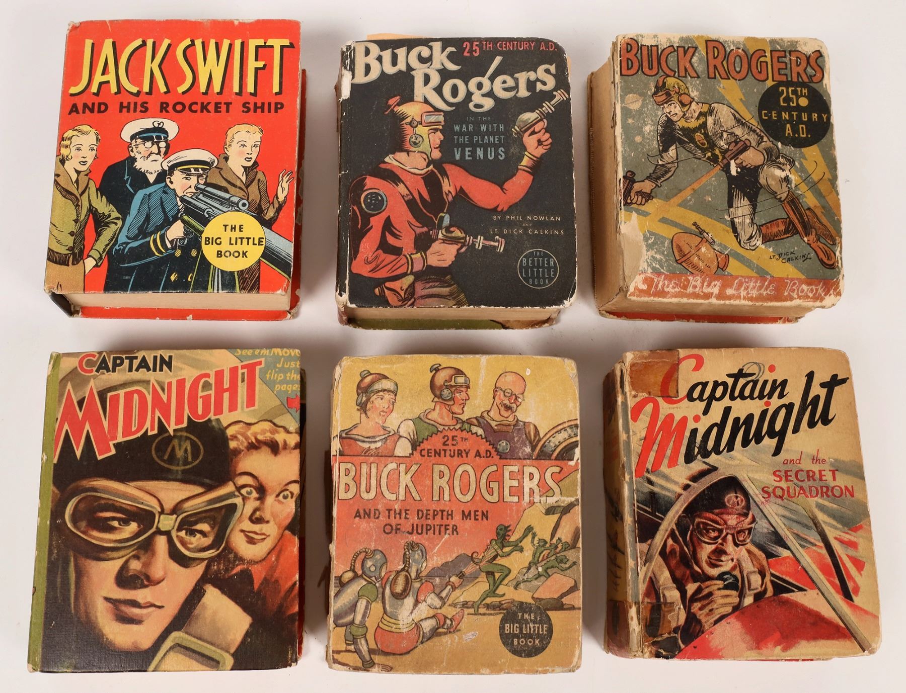 6 Big Little Books featuring male personalities. 3x Buck Rogers, 2x Captain Midnight, Jack Swift and His Rocket Ship. Poor to good condition.