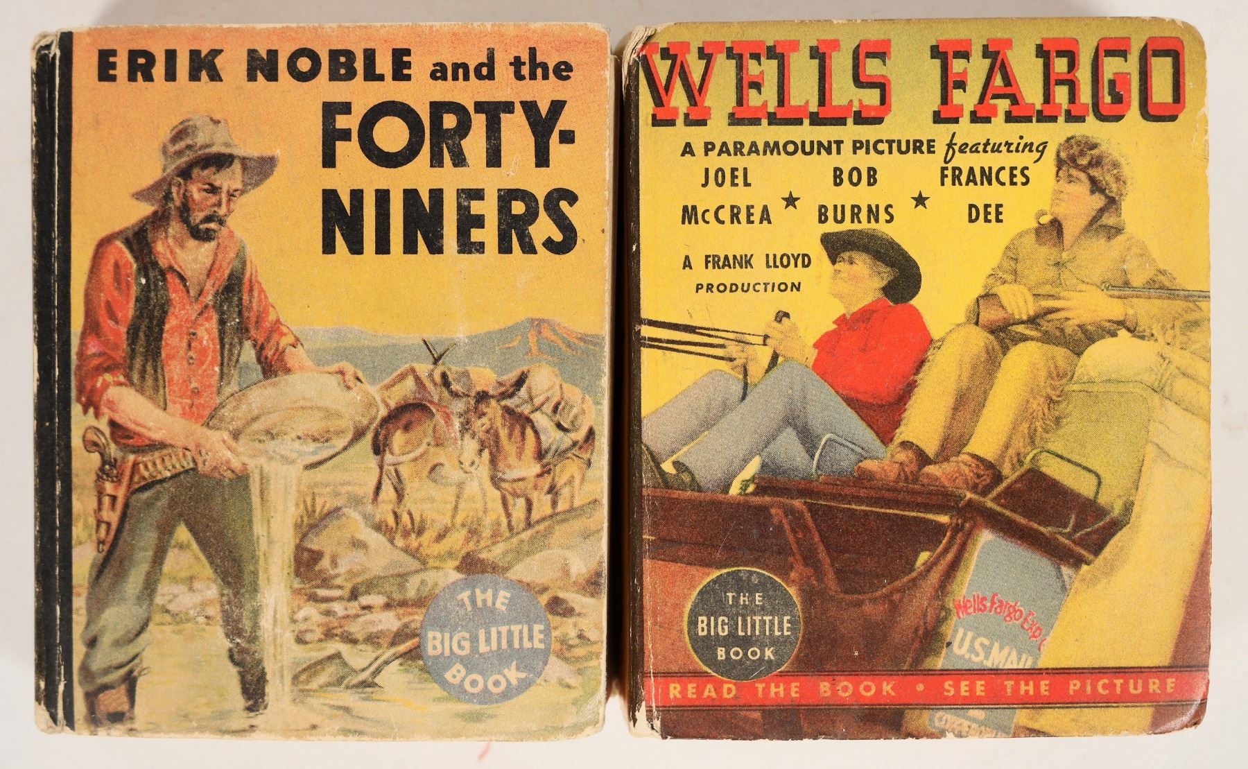 2 different "Big Little Books". Features Wells Fargo (a story of the exciting days of the old west) and Erik Noble and the Forty-Niners (a story about mining), from 1934.