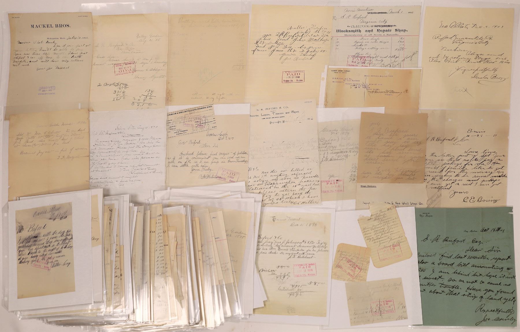 A group of approximately 100 letterheads and business correspondence from Businesses in towns like Virginia City, Ennis, Meadow Creek, etc. Included are pieces from The Gordon Dairy Ranch, Chas. H. Peck, Banker of Red Bluff, S.R. Buford & Company of Virginia City, Vincent & Krogstadt (Meat Company) and more. Please see photos for more detail and condition.