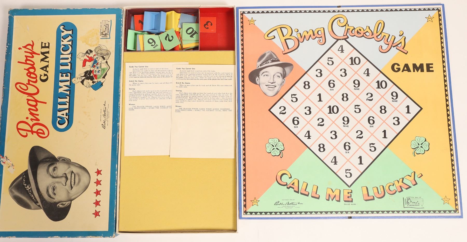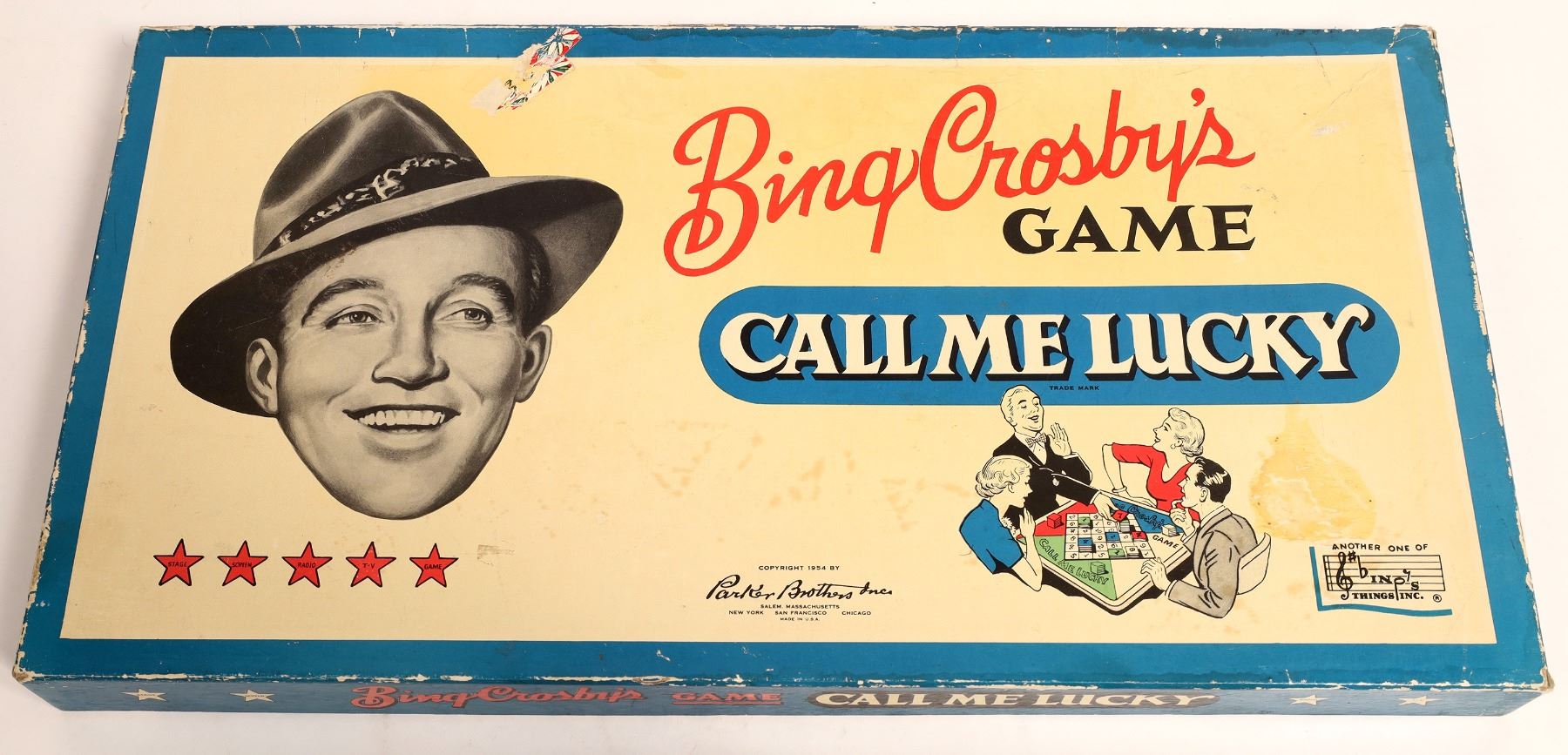 Vintage board game by Bing Crosby. Bottom front of game reads “Copyright 1954 by Parker Brothers Inc. Salem, Massachusetts, New York, San Francisco, Chicago. Made in U.S.A.” Condition is used. Rare piece. Great for any board game collector.