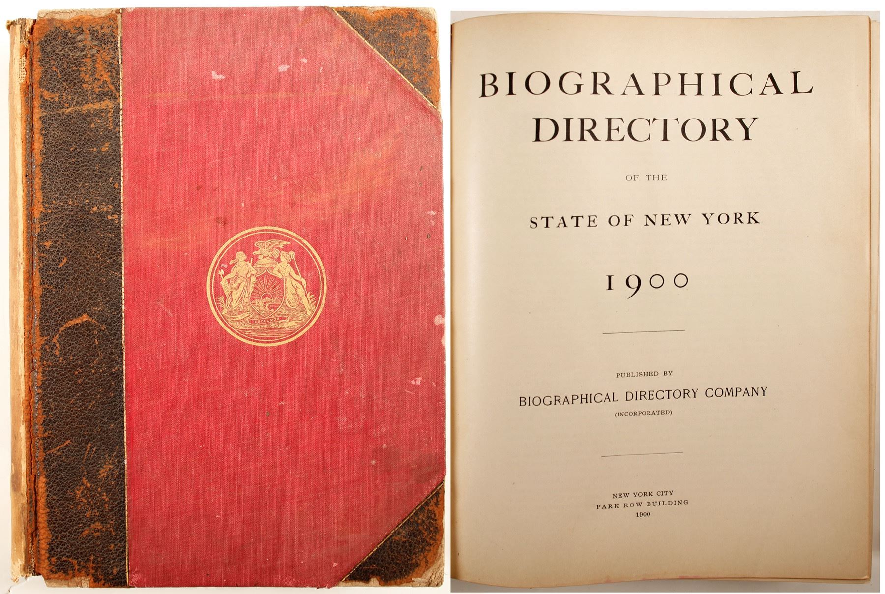 Biographical directory of the state of New York, 1900. Key volume of financiers in New York at the turn-of-the-century. 567 pages. Spine damage. Contents complete, important reference.