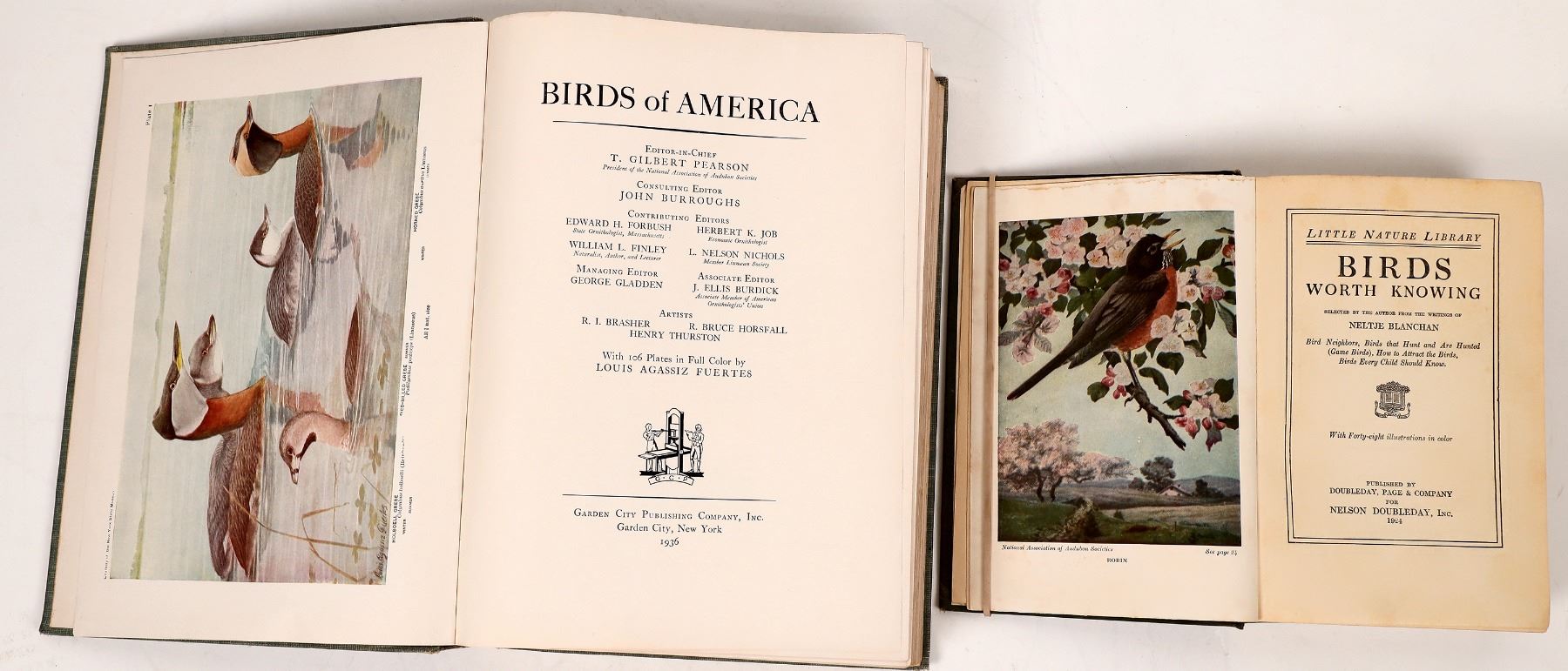 2 Bird reference books. Little National Library, Birds by Blanchan with attractive binding. 1924, 257pp with index and plates. Birds of America by Pearson. 1936, 289pp with index, 106 color plates.