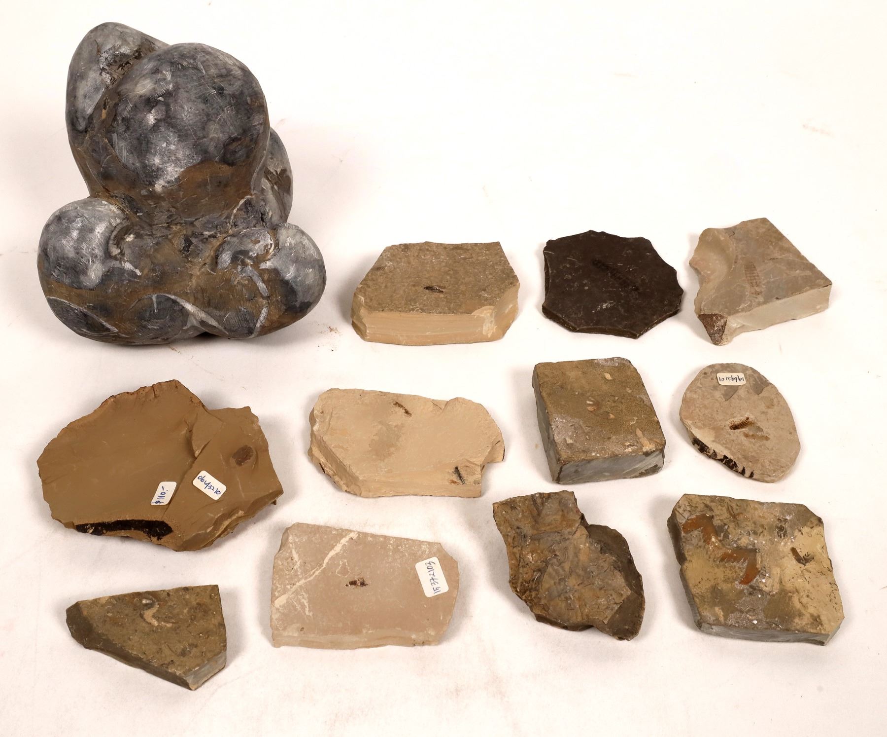 Lot of. 12. One Bivalve, fossilized insects largest 3x4x1Ì China Chunlin Zhu Collection
