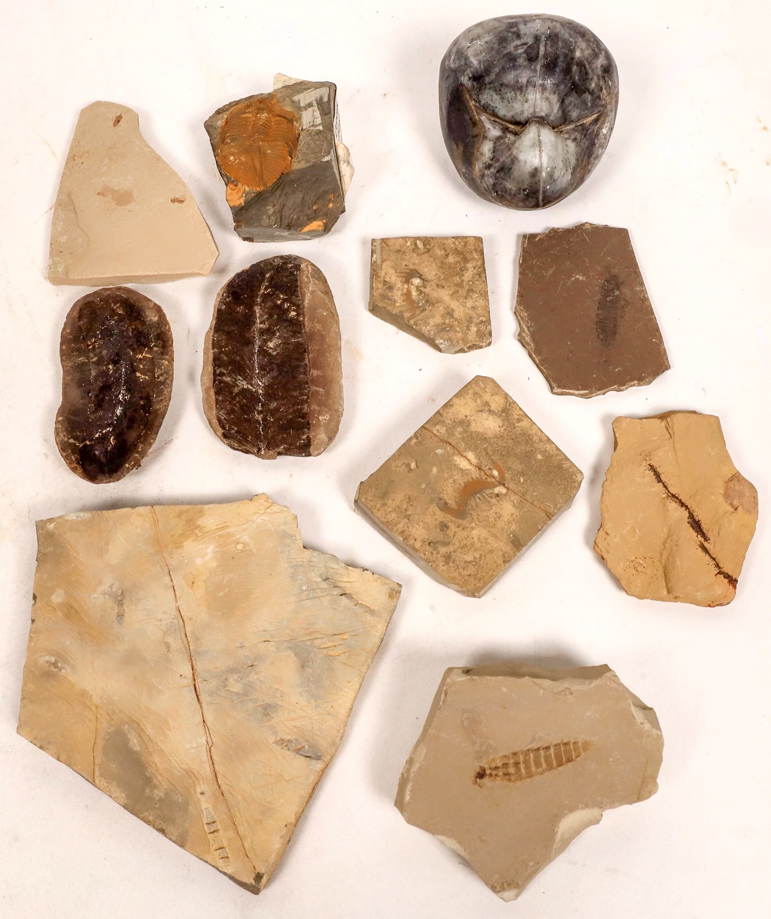 Lot of 11. One Bivalve, Insect fossils largest is 5x5x1Ó. China Chunlin Zhu Collection