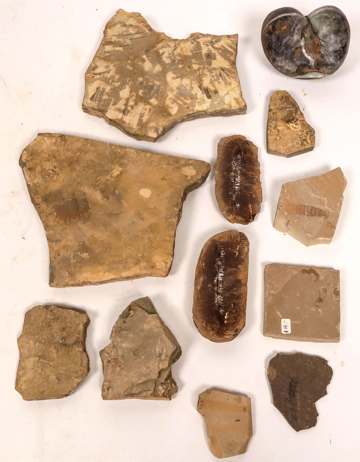 Lot of 11.One Bivalve, Insect fossils largest is 5x5x1".