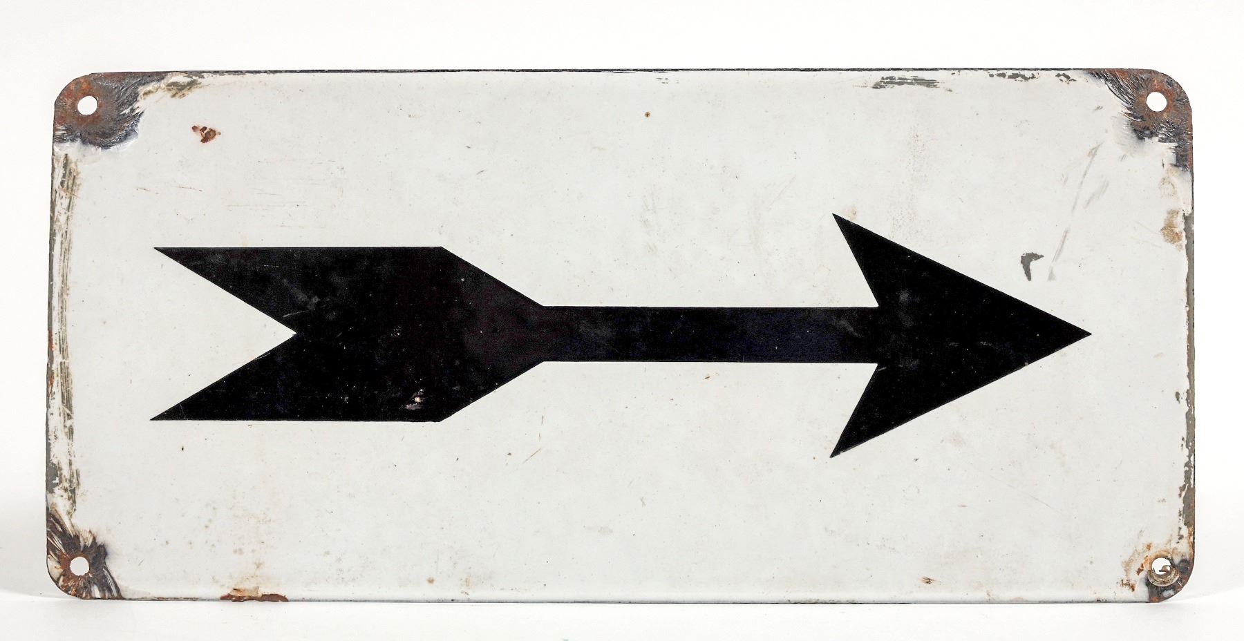 6.5 X 14 ". White background, black arrow, porcelain. From Ogdensburg, New Jersey mining district. Used underground. Good condition.