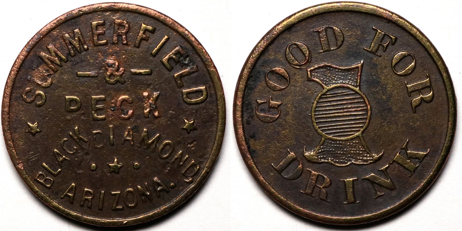 Summerfield & Peck/Black Diamond, Arizona // Good For/ 1 /Drink Brass/20mm.