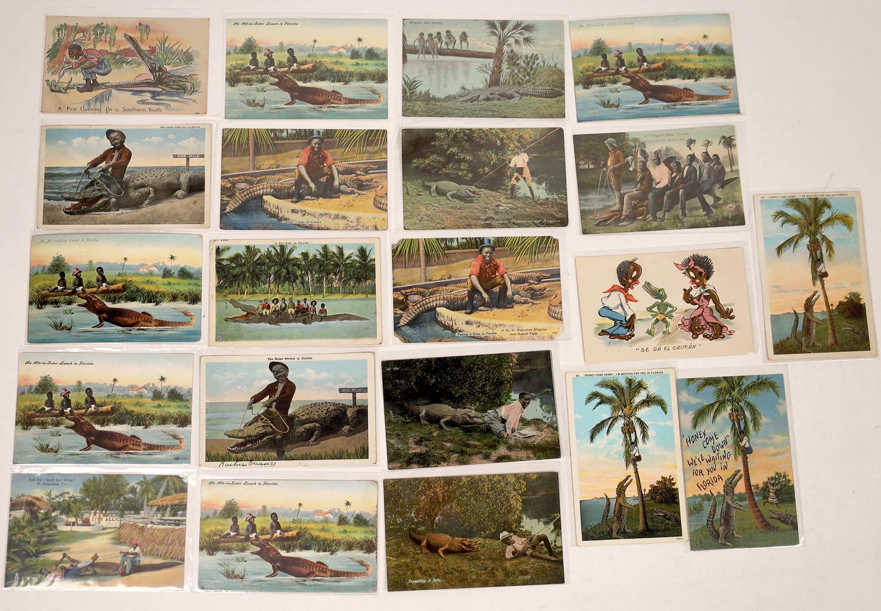 A collection of about 20 vintage postcards, c 1908, using the alligator humor theme. Several different publishers.