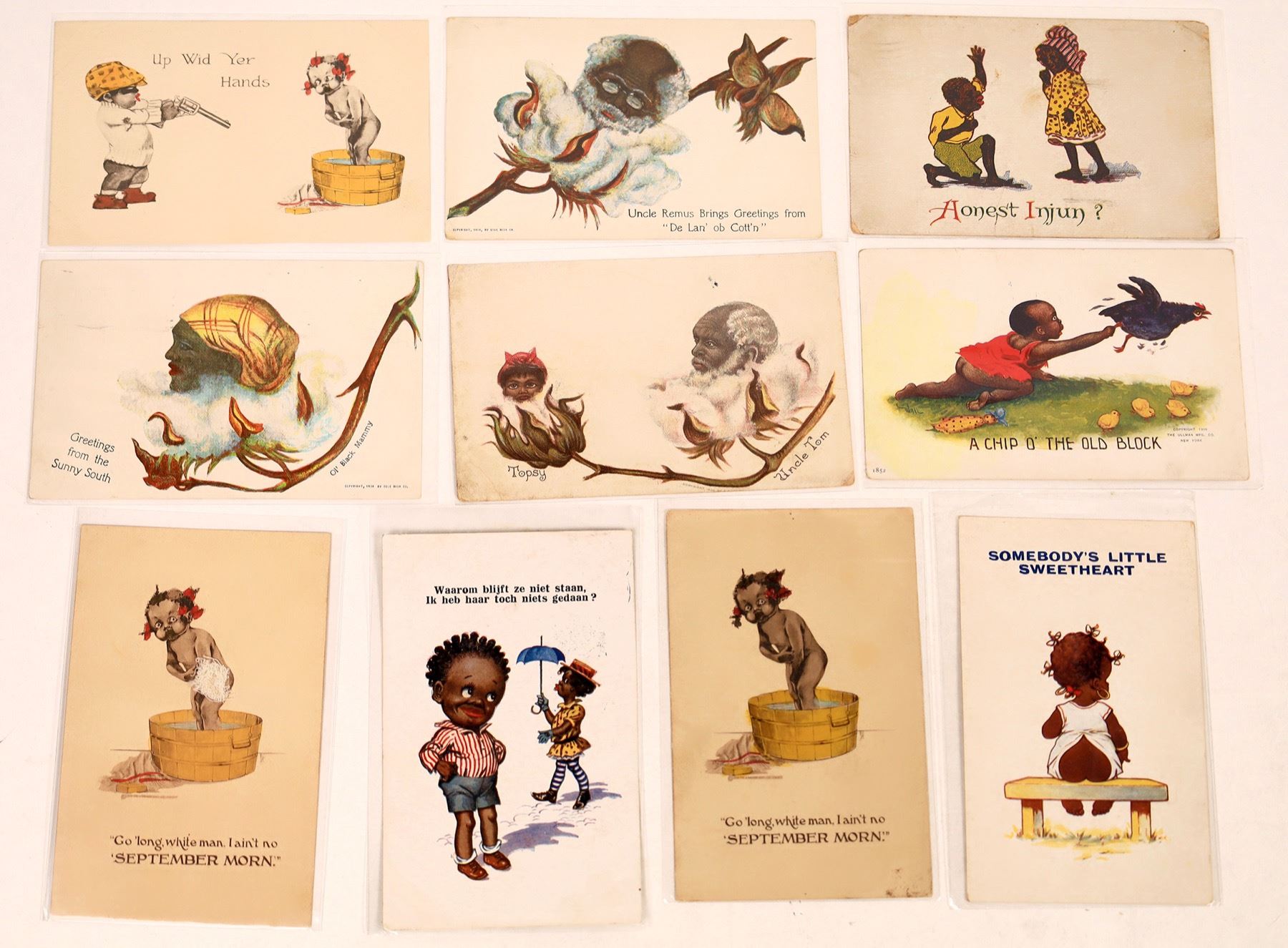 Ten vintage (c1907) post cards of children charactures, all unsigned but very similar artist.