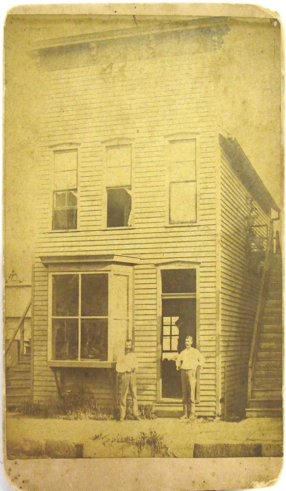 Blows taylor shop next to L. G. Stules building. Possibly V. A. Steele in front. Cabinet card, c 1885-1890. Excellent project for a researcher to look up these people. HWAC# 63523 Date: Location: