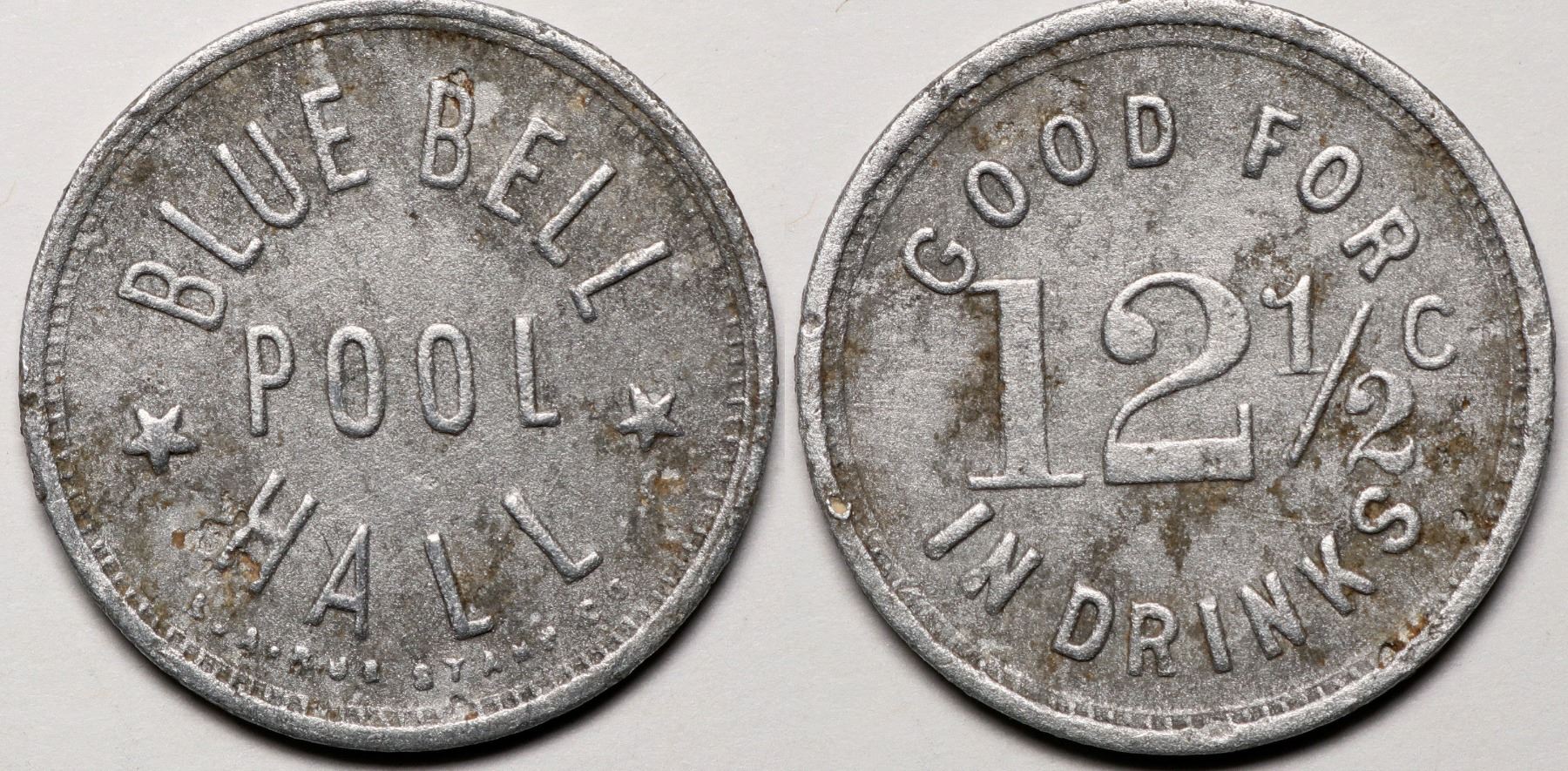 Blue Bell/ Pool / Hall // Good For/12.5c/In Drinks. AL, 25mm. R8. Blue Bell is now a ghost town.