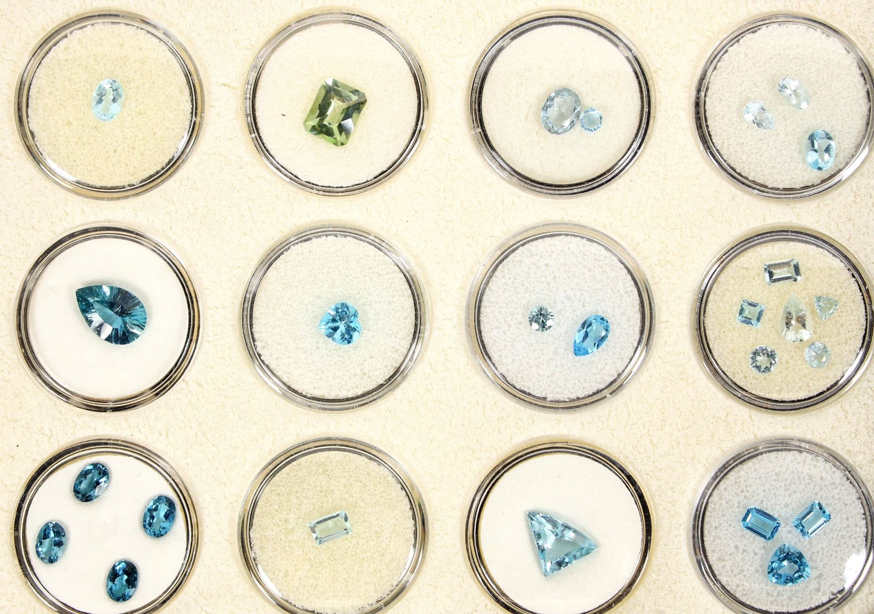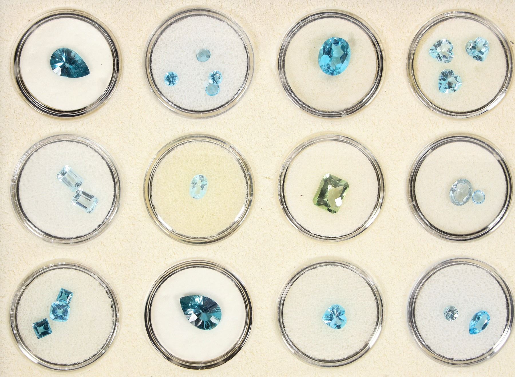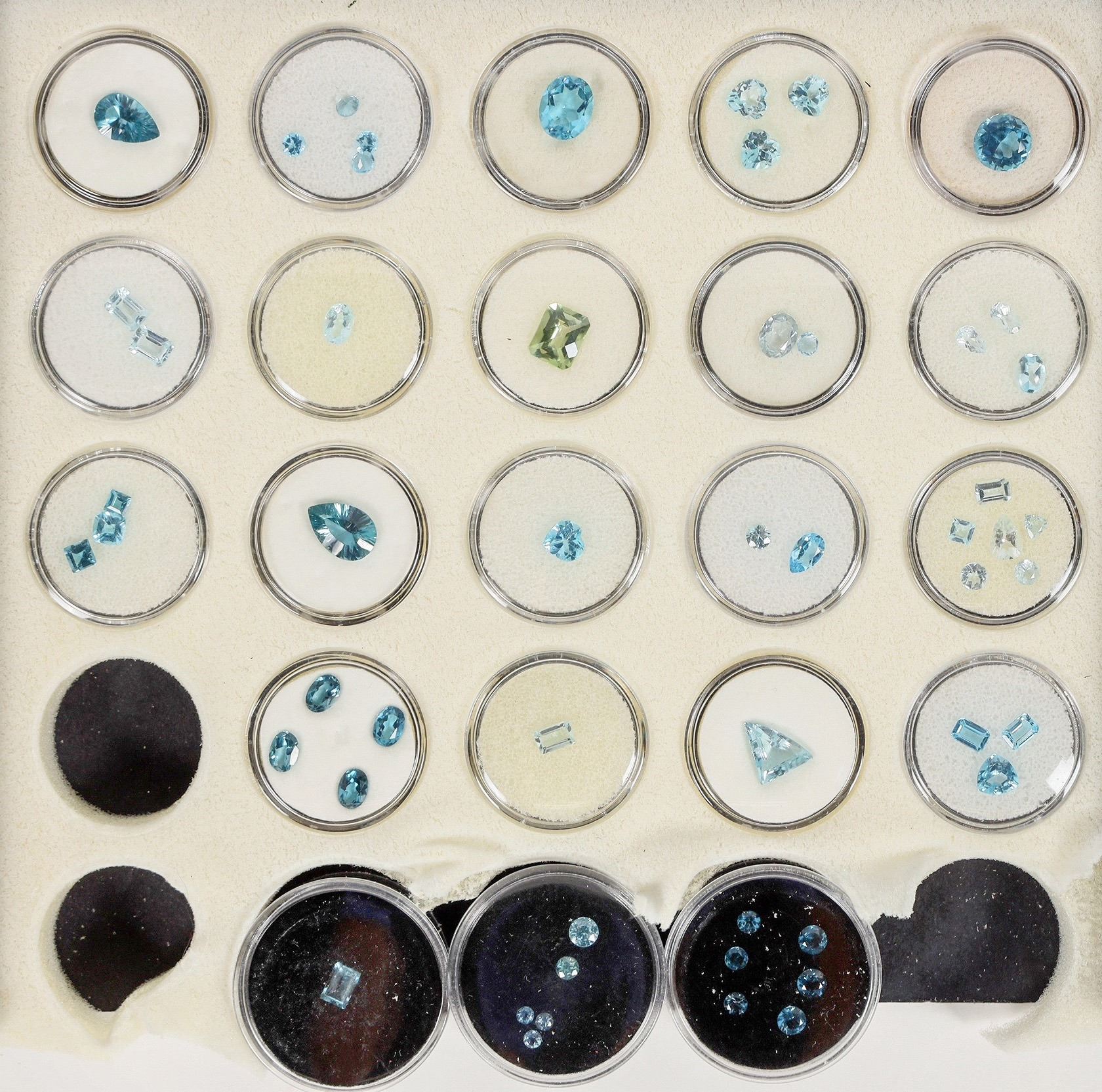 Blue Topaz Faceted Gem Group 22 Containers 1" circular gem holders. Over 45 stones. Many different cuts and size. Very attractive. Please inspect, an excellent lot.