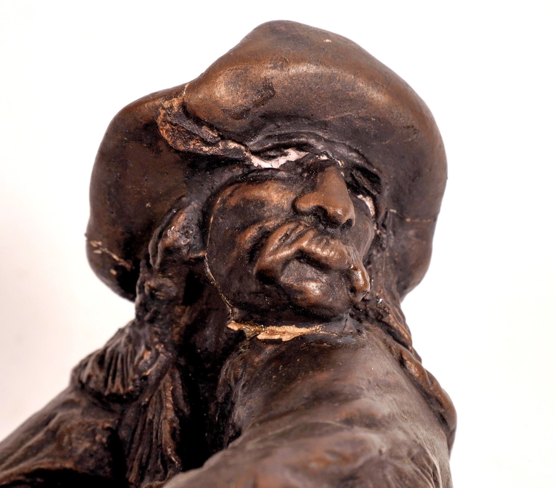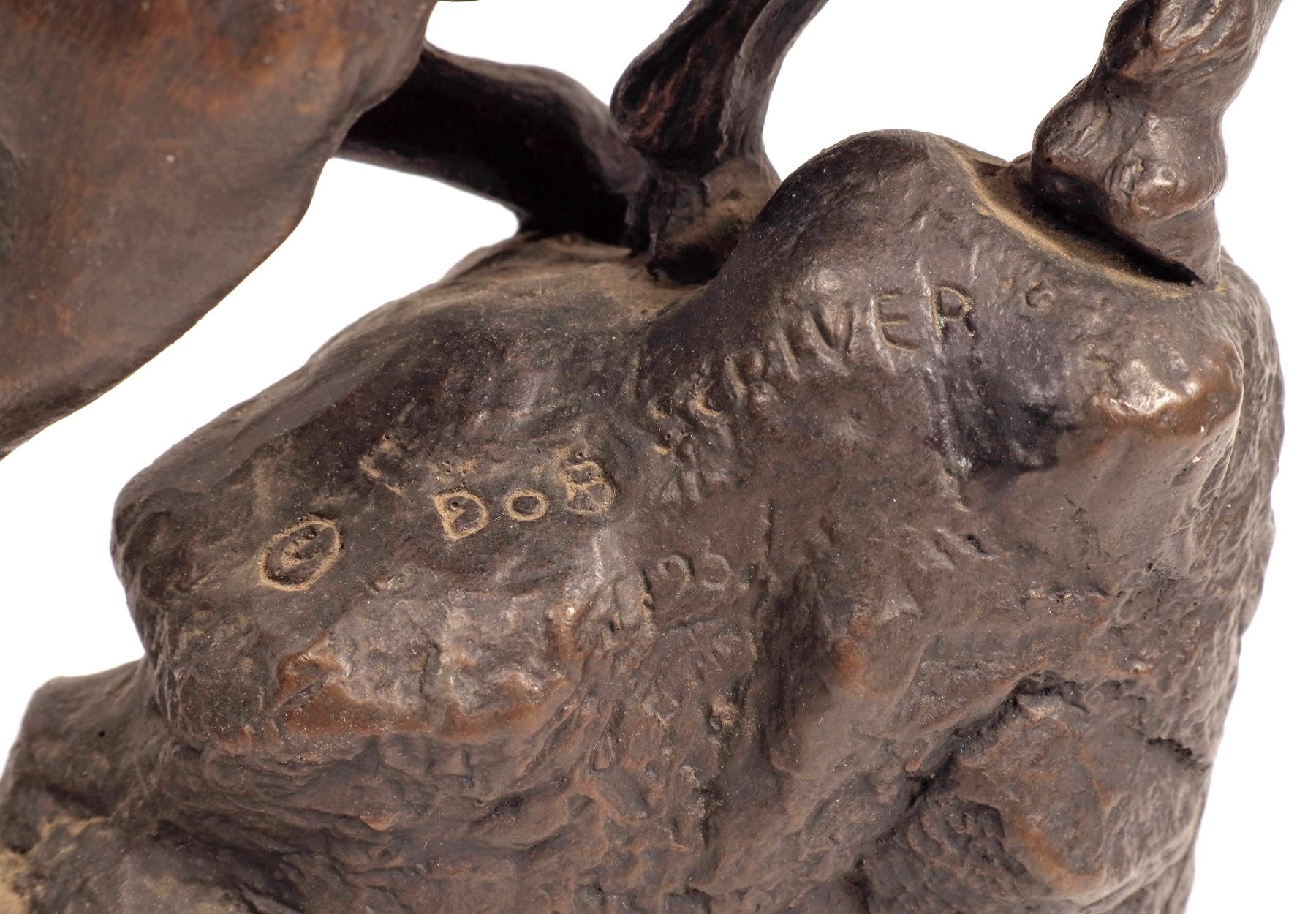 Bronze sculpture signed by Bob Scriver(1914-1999), 1957, Austin Prod. Cowboy on a horse. 15.25x9.25x7. Face has glue repair.