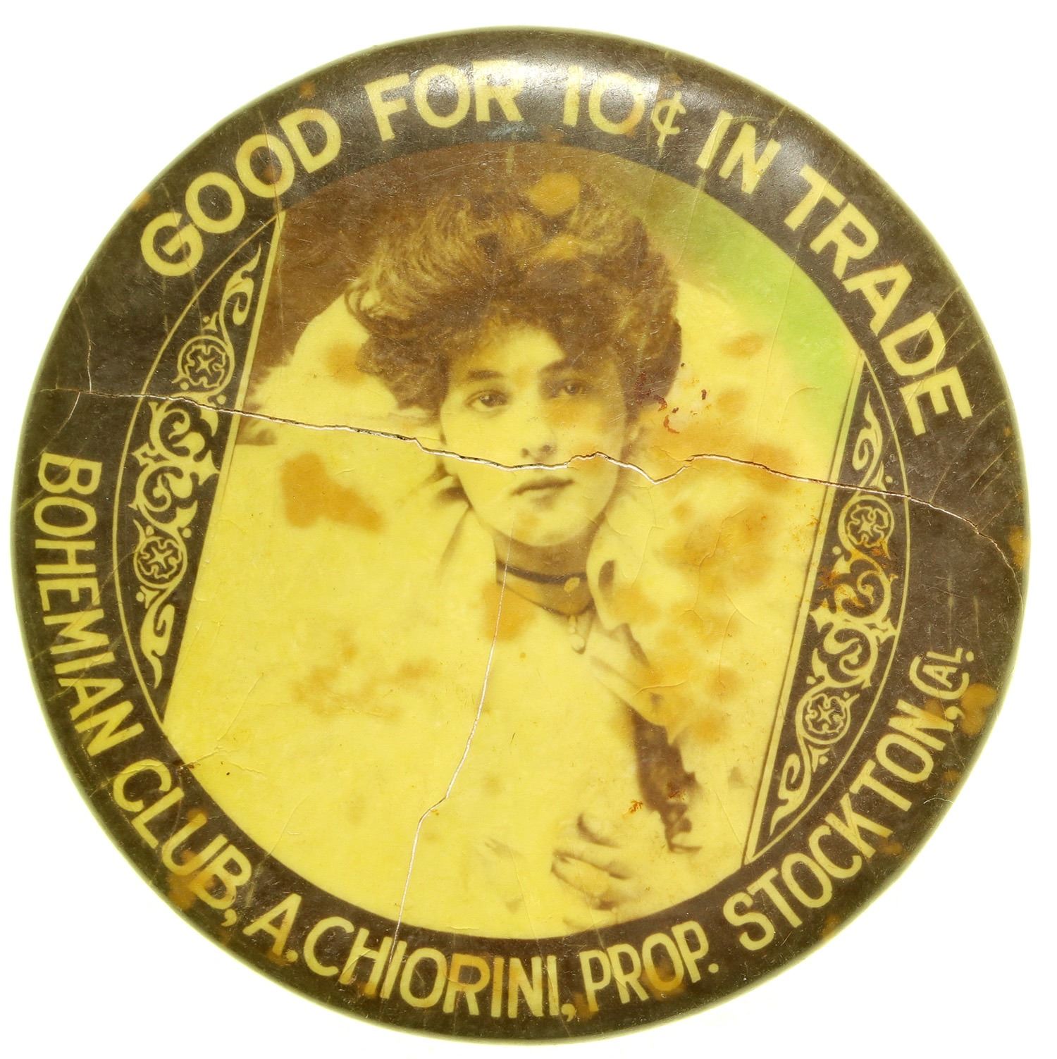Good for 10c In Trade / Bohemian Club, A. Chiorini, Prop. / Stockton, Cal. 56 mm.