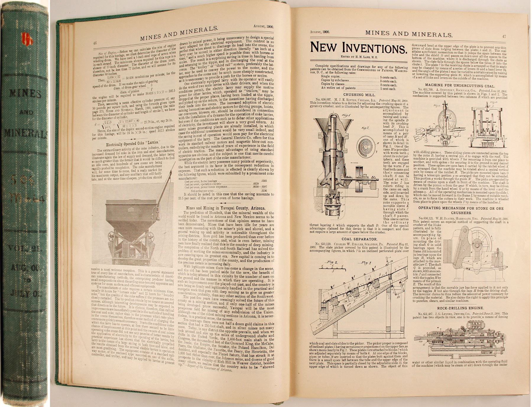 "Mines and Minerals," Vol. XXI, August 1900 to July 1901. The Colliery Engineer Co., 1901. 575 pp. Illustrated, including fold-out. Former library book. Front board detaching. Upper/lower spine wear, otherwise good.