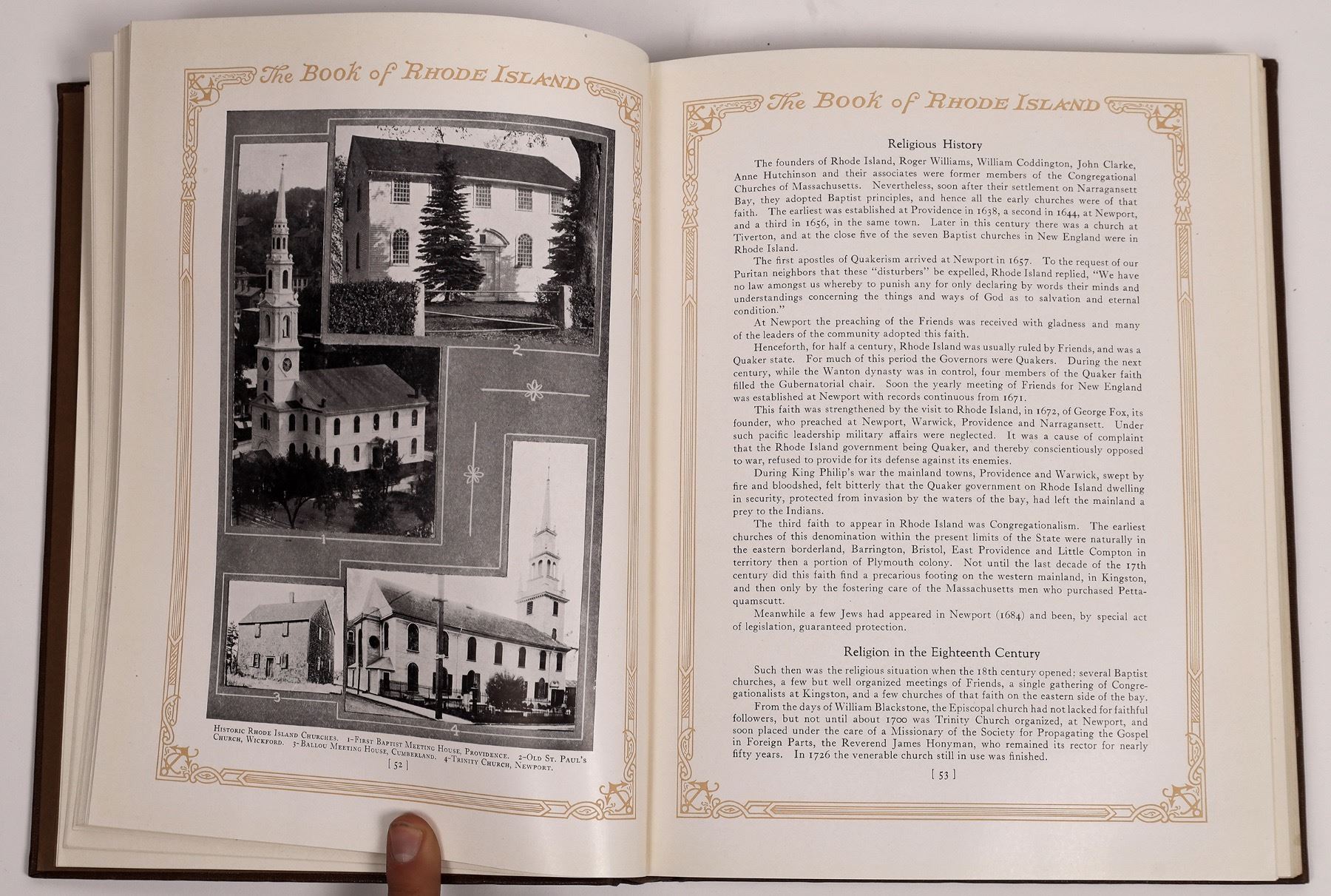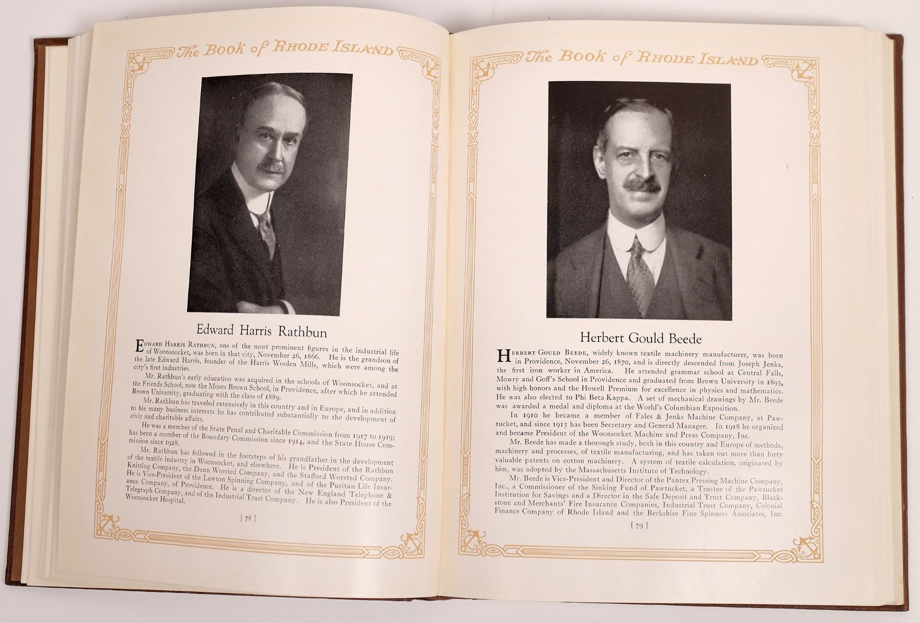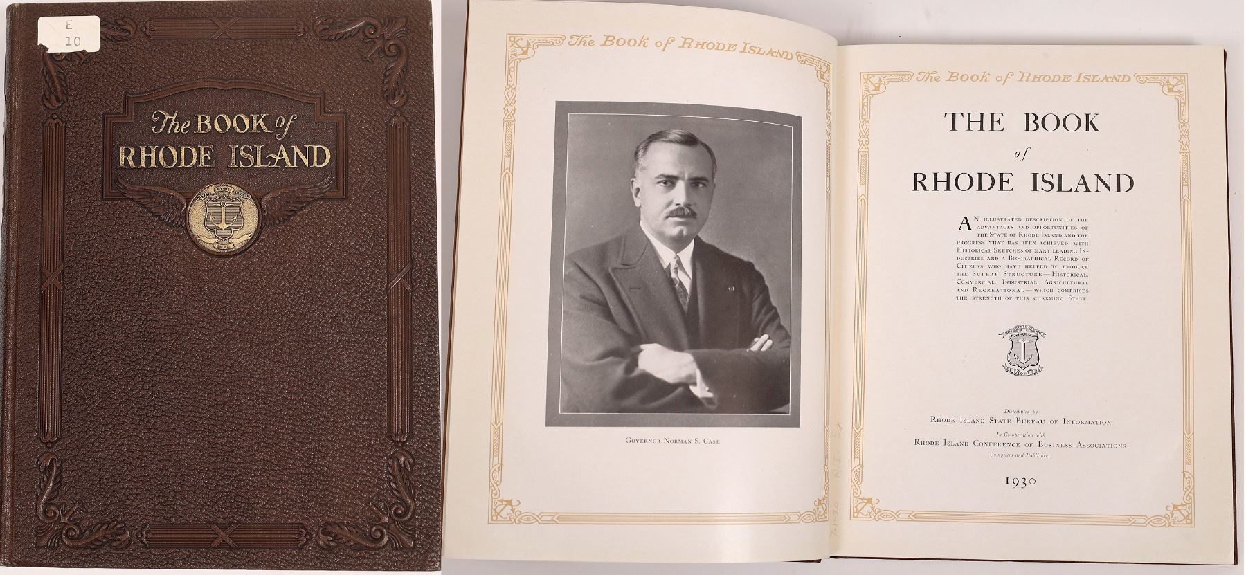 Hardcover 1930 distributed by Rhode Island State Bureau of Information. Rhode Island historical figures and businesses with building photos. 299pp.