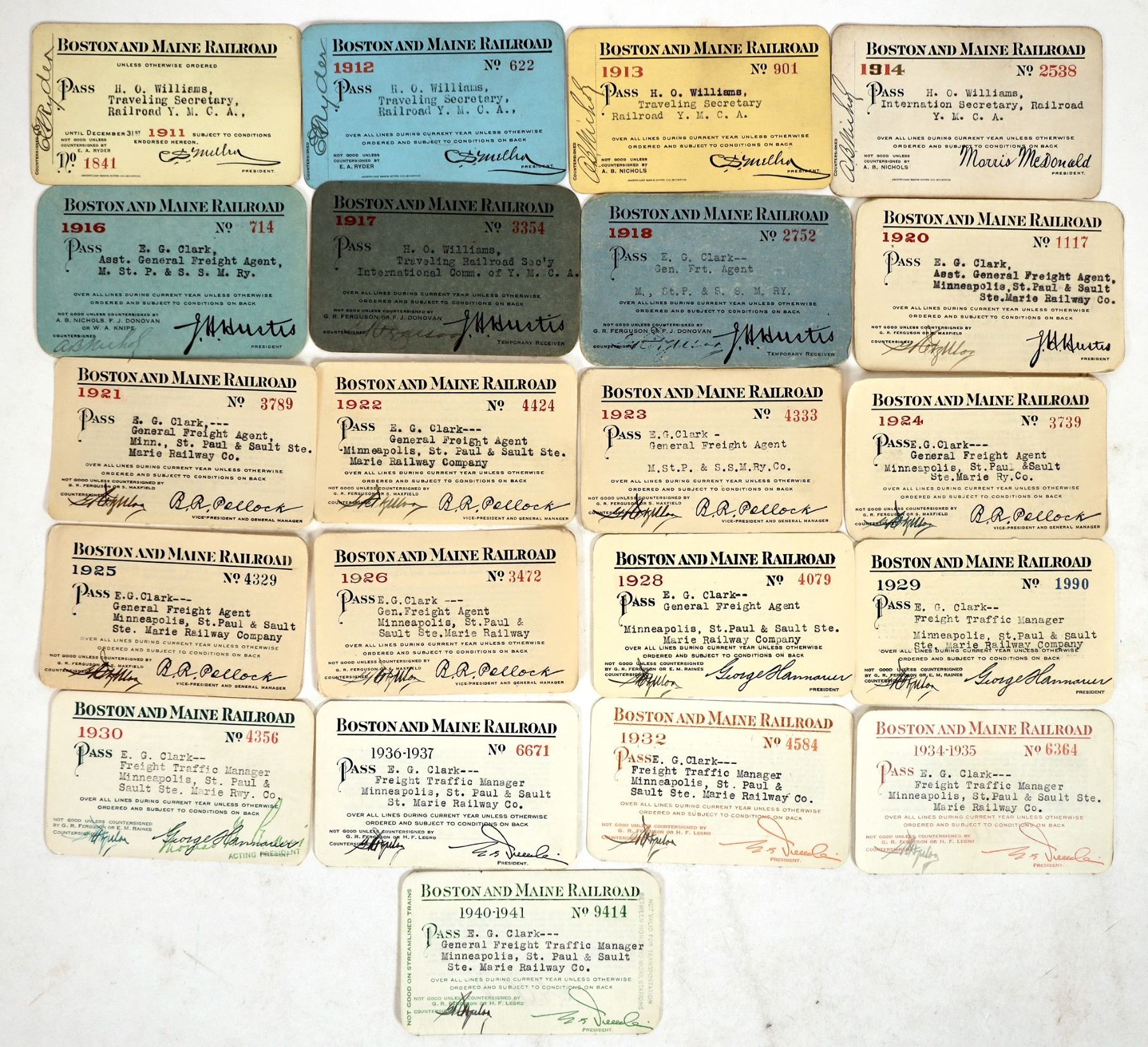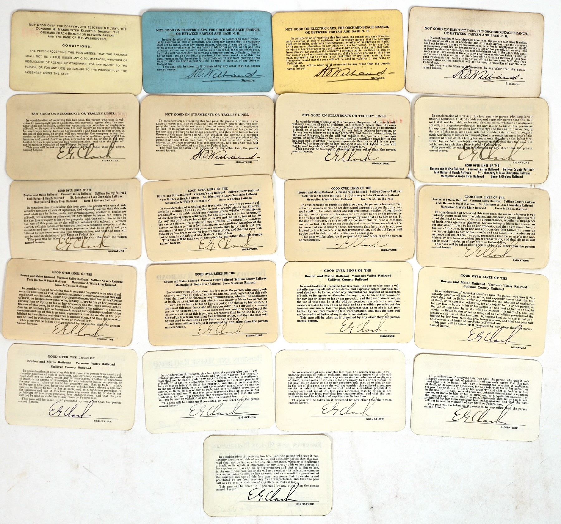 Group of 19 railroad passes from the Boston & Maine Railroad. Passes date from the early 1900s; see photos for specific years and additional detail.