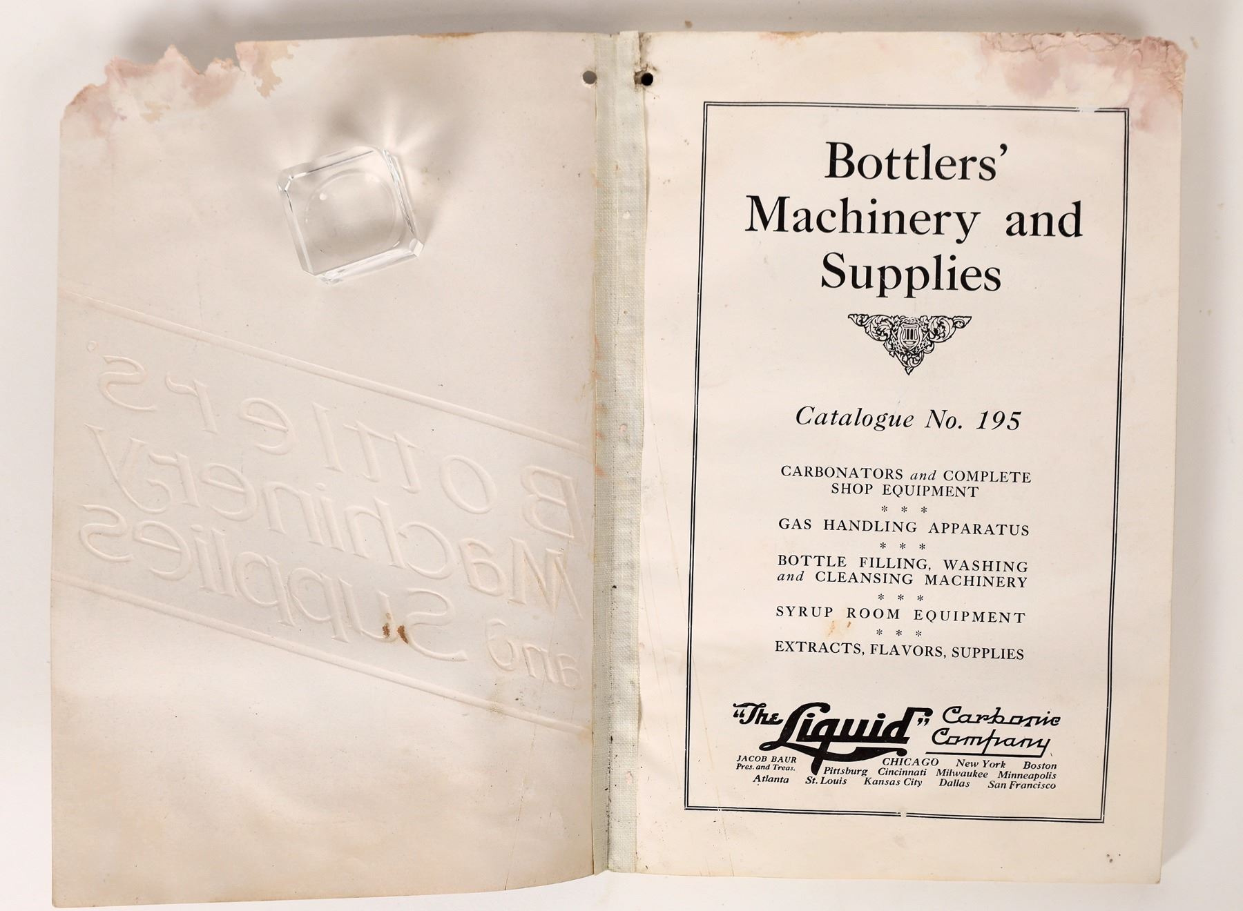 Bottlers' Machinery and Supplies, illustrated catalog 195, from The Liquid Carbonic Co., Chicago. 159pp with index. See photo for upper corner degradation, stained covers. Please inspect.