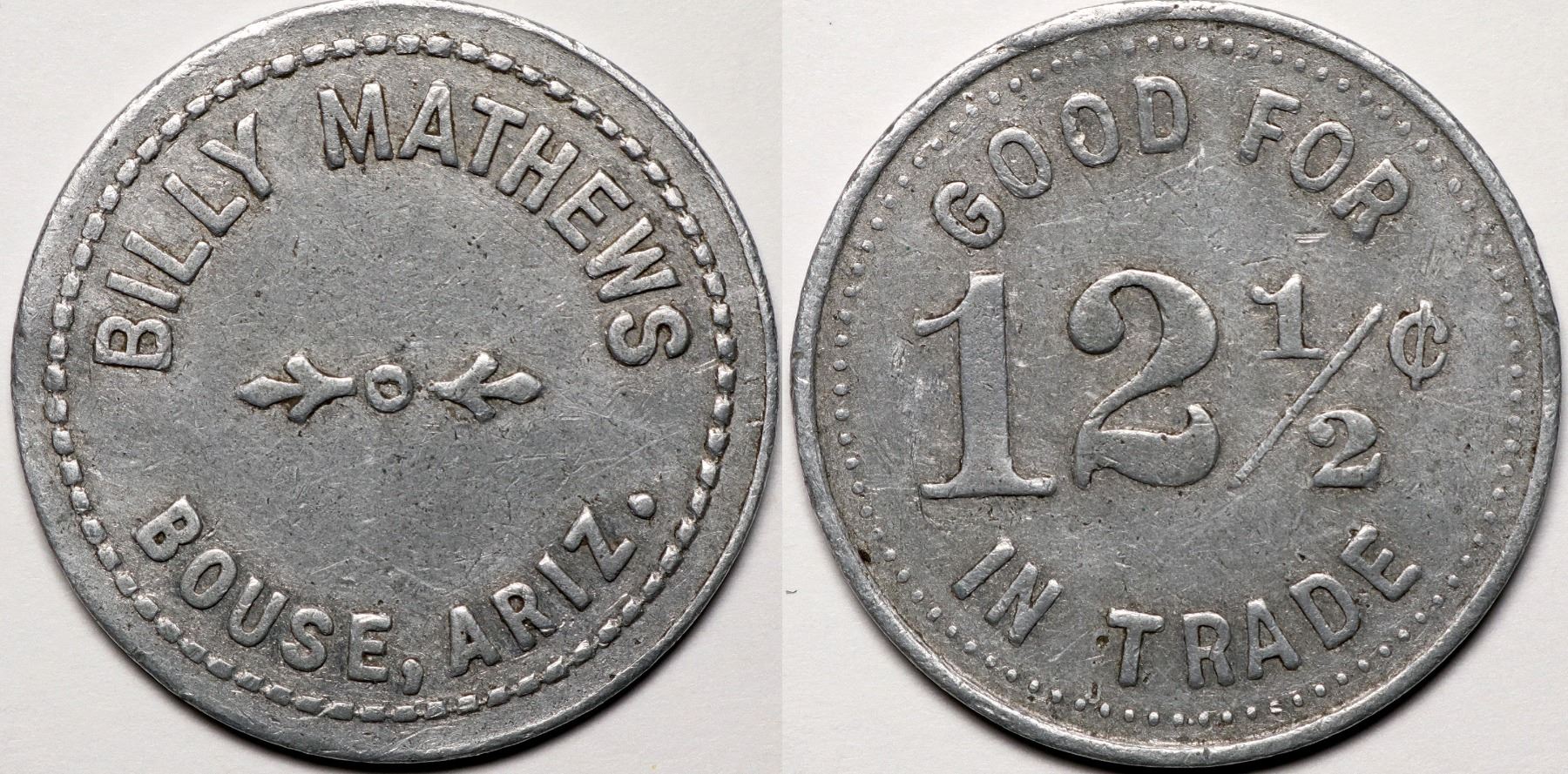 Billy Mathews/Bouse, Ariz. // Good For//12.5c//In Trade. AL, 20mm.