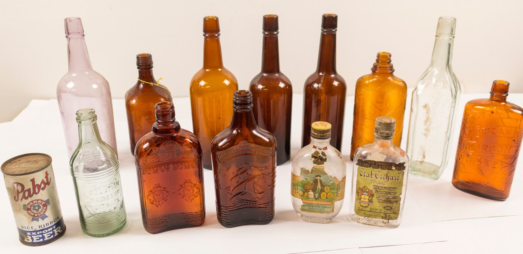 item #3: half pint Crab Orchard Brand Kentucky Straight Boubron Whiskey, 93 proof, bottled by "The American Medicinal Spirits Corporation", Louisville, Kentucky 1930's
