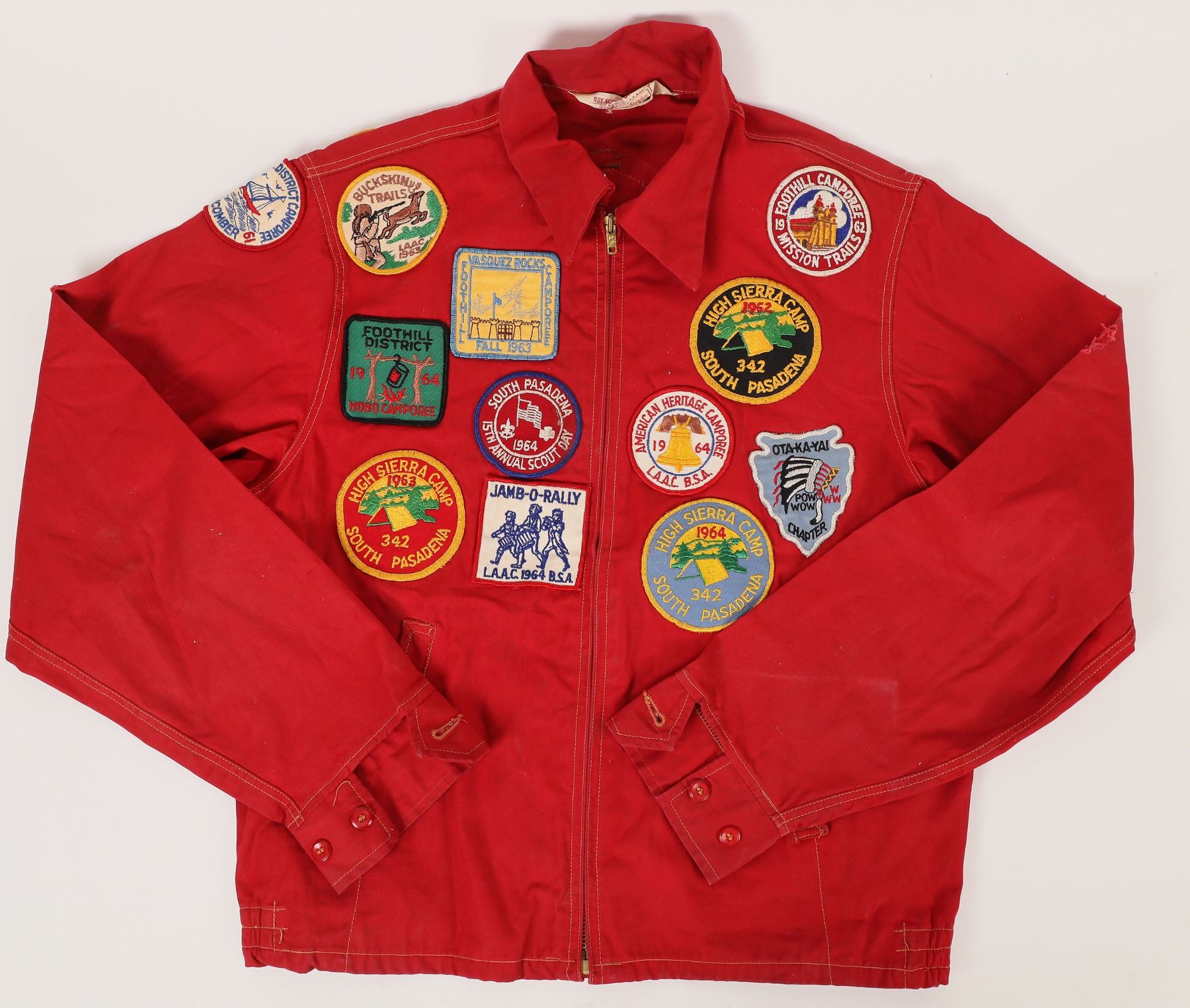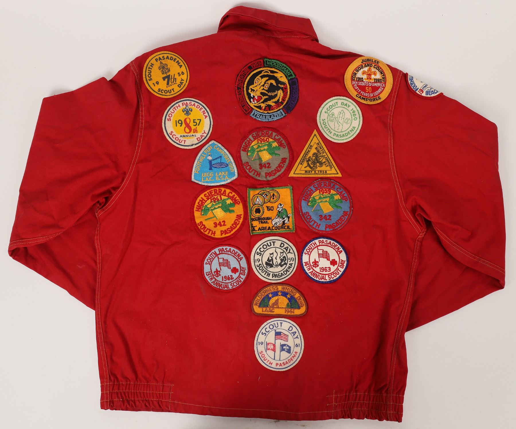Boy Scout Vest with about 28 patches designating jamborees and other gatherings. Looks to be about a medium. Please see photos for more details. California Pasadena 1950s