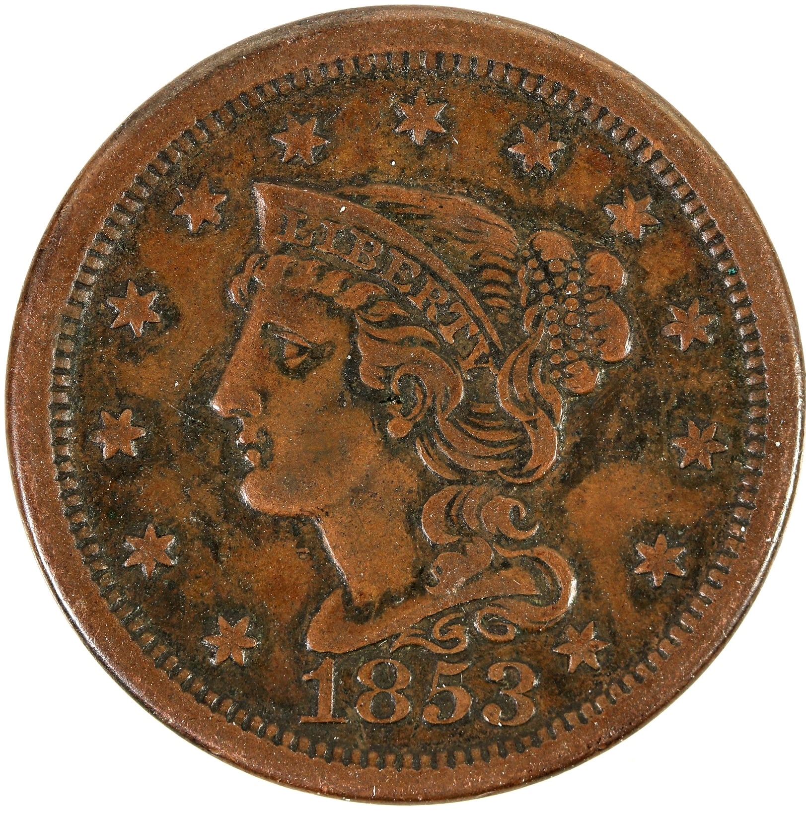 Attractive extra fine condition 1853 Braided Hair Cent.