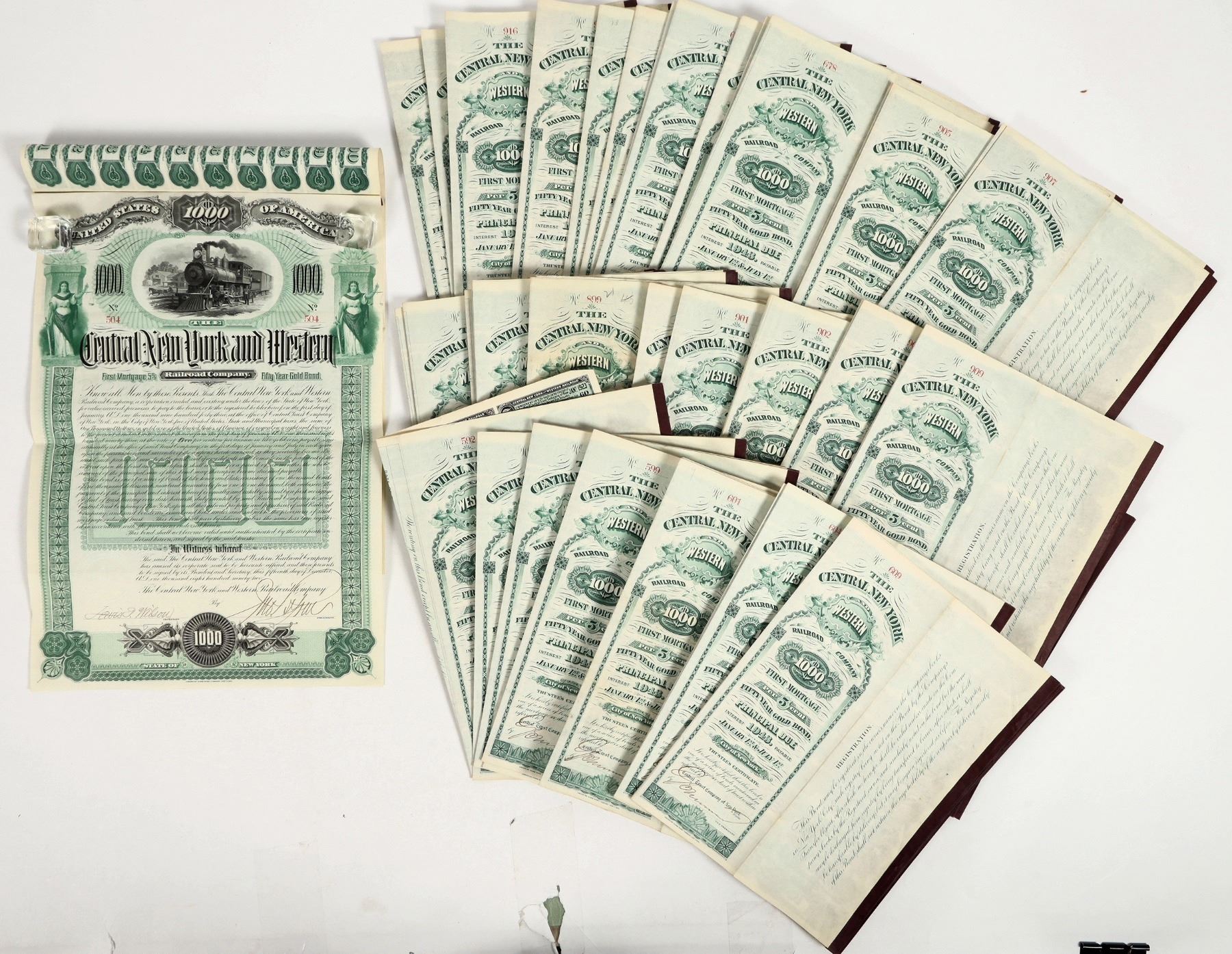 Lot of 50+. I/U. Issued 1895. Fine or better. Brandenburg Coal Mining Co. Bond. , $1000. 5%, gold bearer bonds. coupons attached.. American BNC. printer.