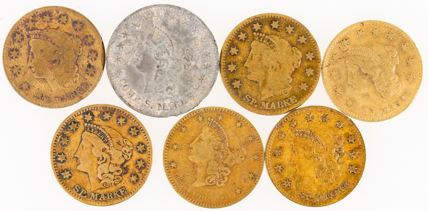 Brass Counters after US $5 Gold Piece, 7pcs [191978]