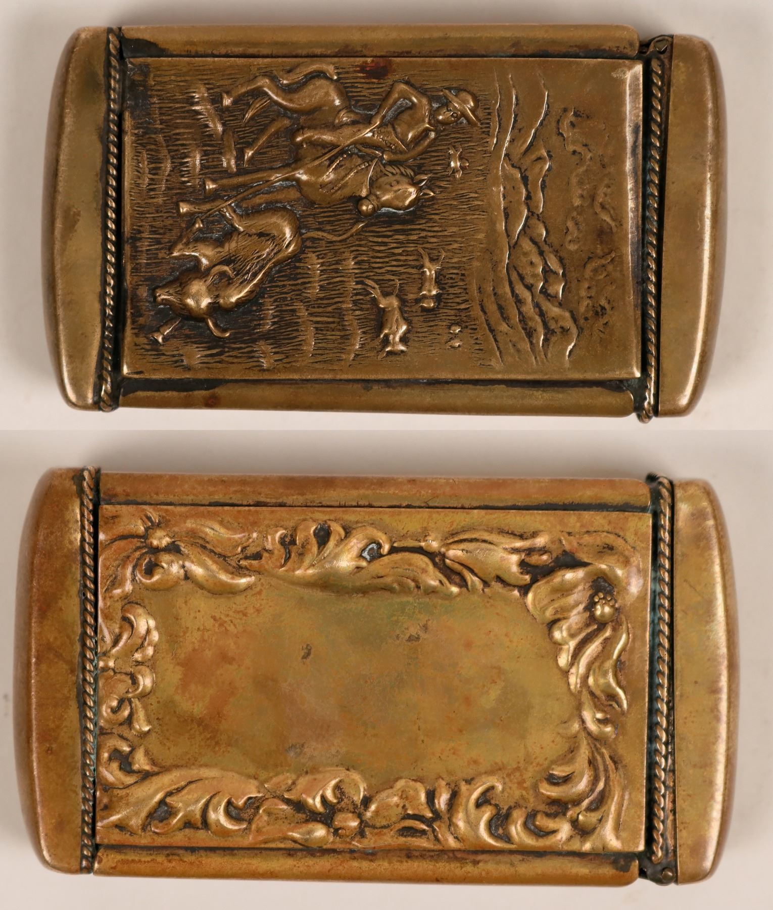 Western style embossed design on one side and cowboy roping a cow on open range picture on opposite side.