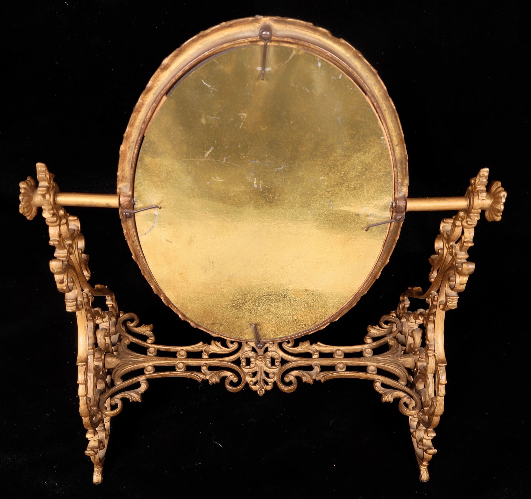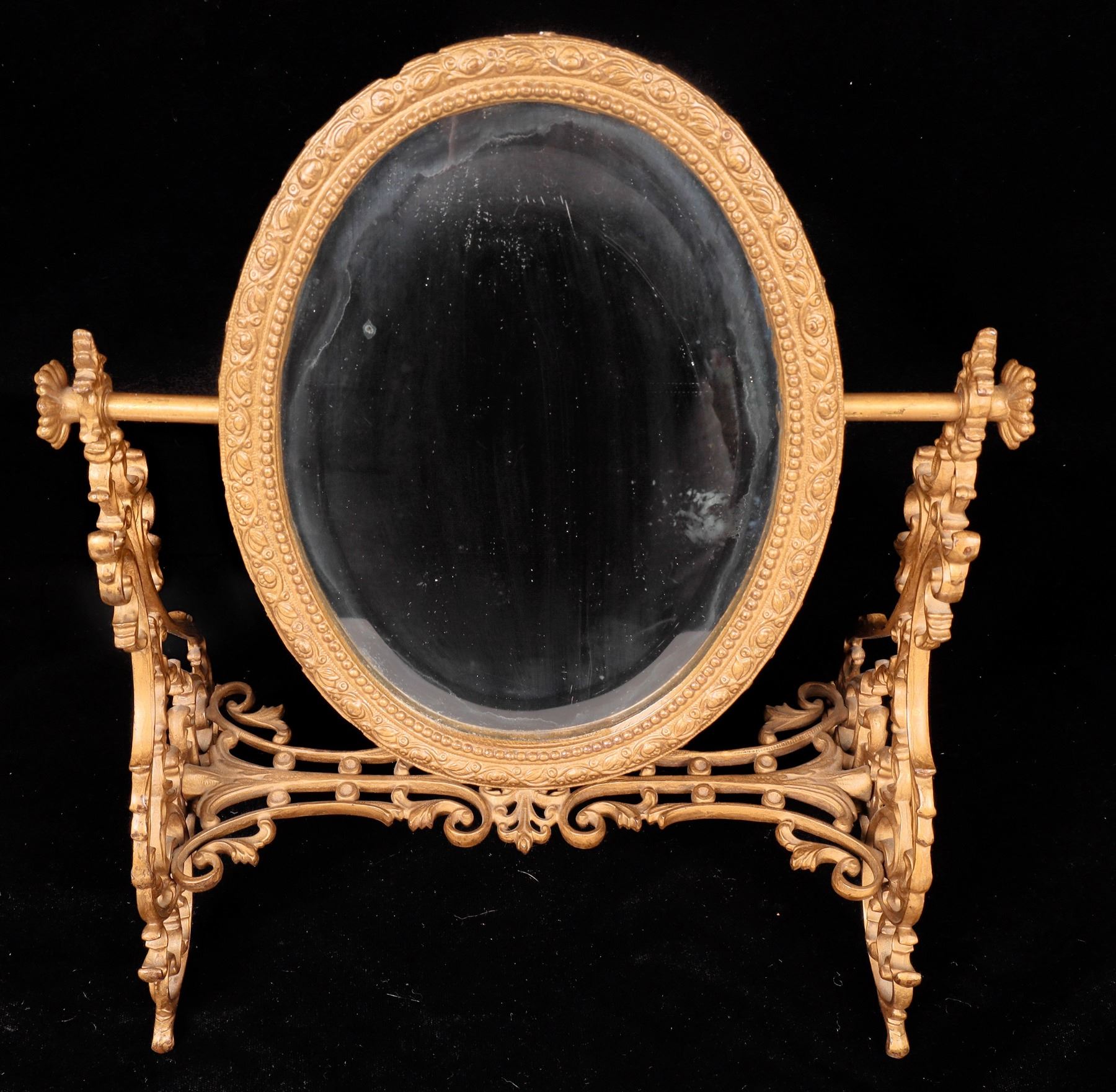 Vintage brass shaving mirror. Overall, the piece measures 10"x 11", while the mirror measures 7"x 9". It is still in nice condition and ready for your straight razor. Please see photos for more details.