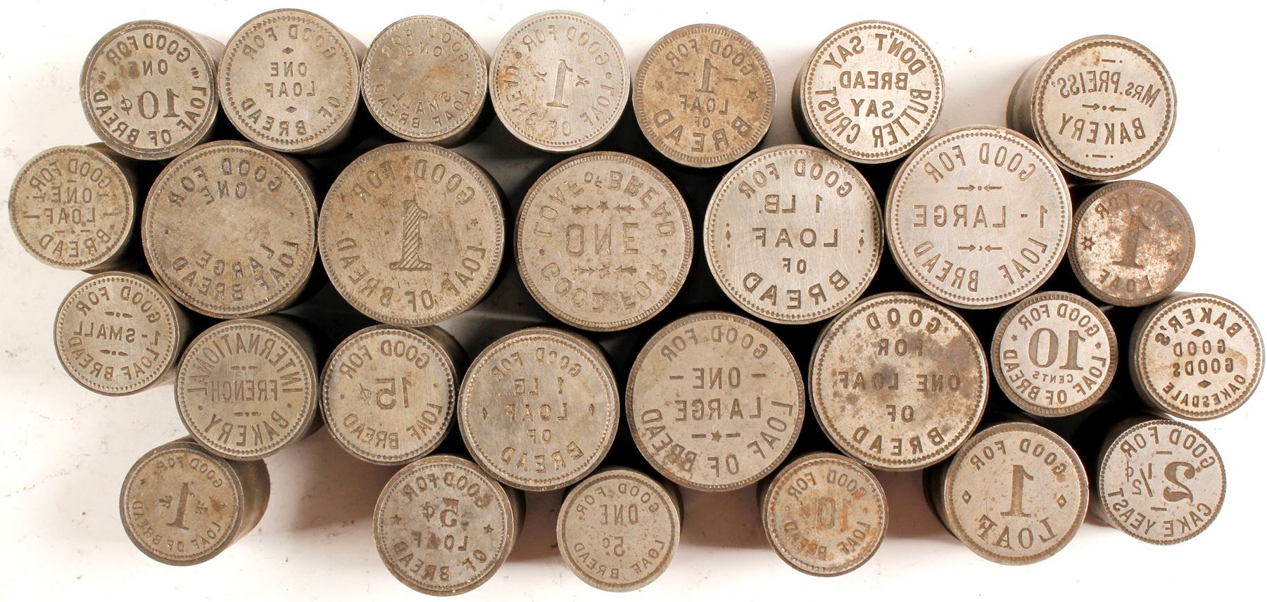 Twenty Eight bakery dies of various sizes from an unknown diesinker in Seattle, c 1905-1950 from the NWTM historical die collection. Most are reverse dies. State: City: Date: HWAC# 84639