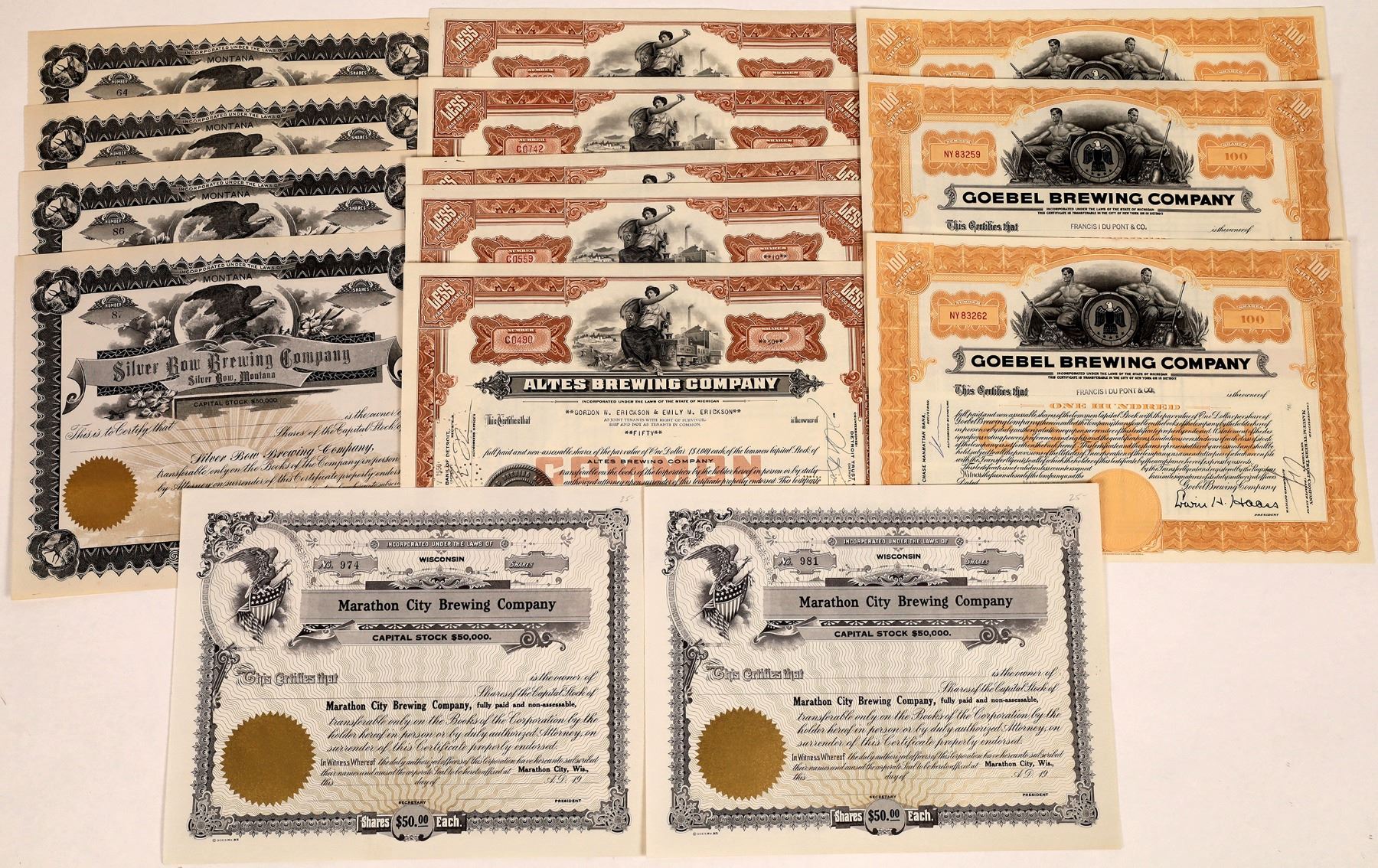 Lot of 14. Duplication. Includes: Goebel Brewing Company (1961, x3); Altes Brewing Company (1950, x5); Silver Bow Brewing Company (4 unissued); and Marathon City Brewing Company (two unissued).