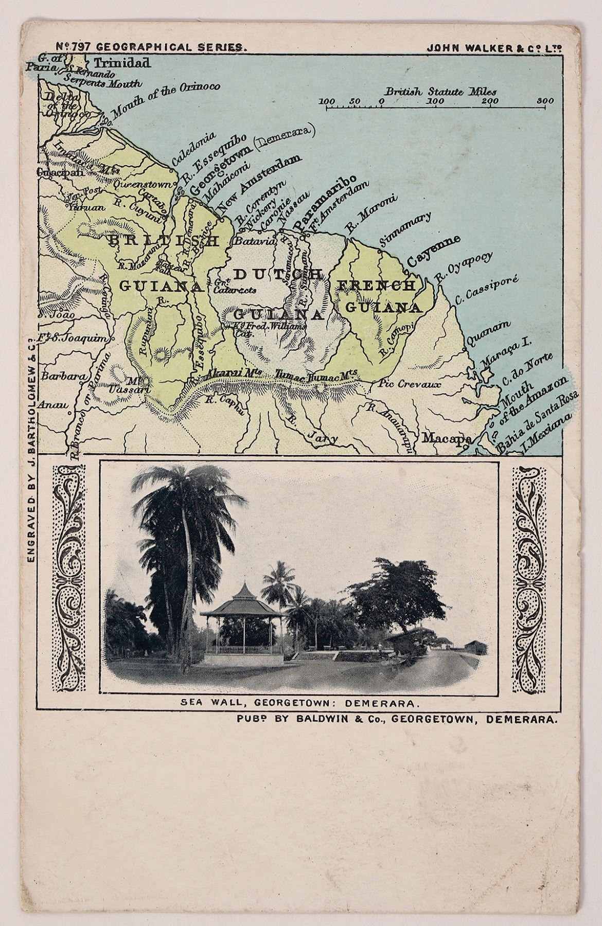1908 British Guiana postcard with a map.[ British Guiana Guiana